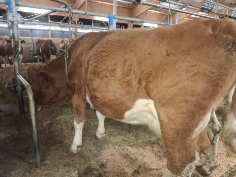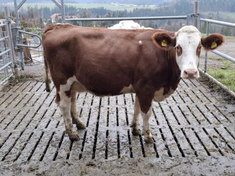 Trächtig Fleckviehkuh zu verkaufen, Altmelk 20 l Tagesmilchmenge, soll kalben Mitte April, nervös, erhöhte Zellzahl (240.000). Rindermarkt Fleckvieh
