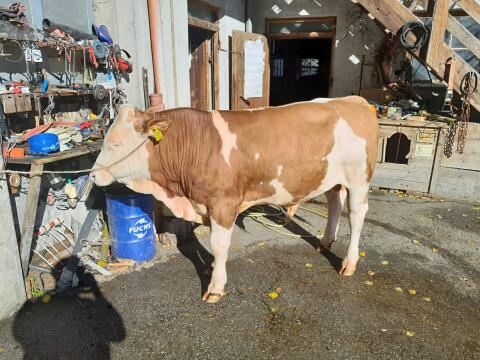 Verkaufe schönen Zuchtstier, Geburtsdatum 25.9.2024, ca. 600 kg schwer, 100 % Fleckvieh, es gibt schon trächtige Kühe. Sehr gutmütig. Rindermarkt Fleckvieh