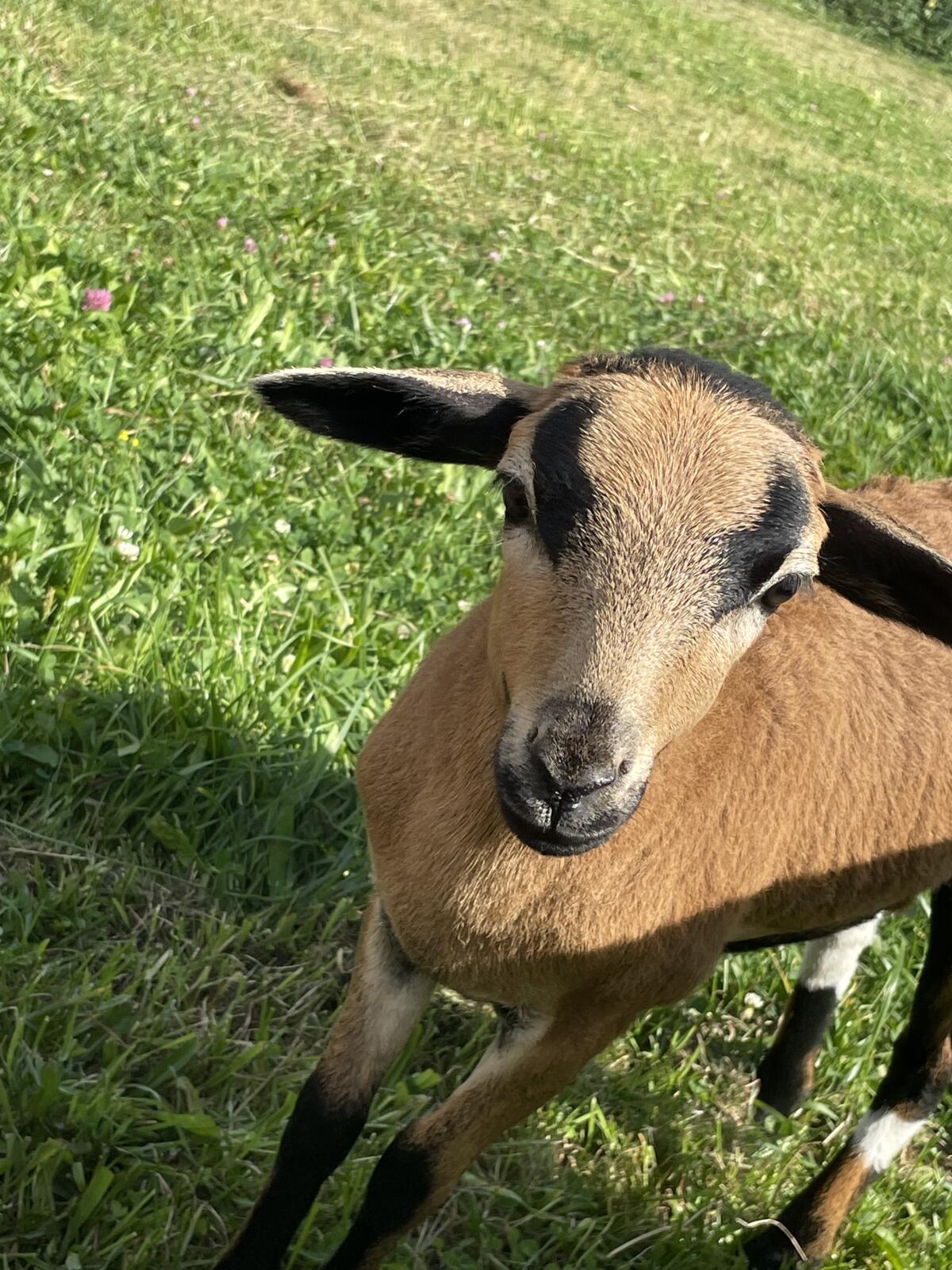 Wir verkaufen unseren zutraulichen zweifarbigen Schafbock (Gustl), 1, 5 Jahre alt. Keine Hausschlachtung, Selbstabholung. Schafe Kamerunschafe