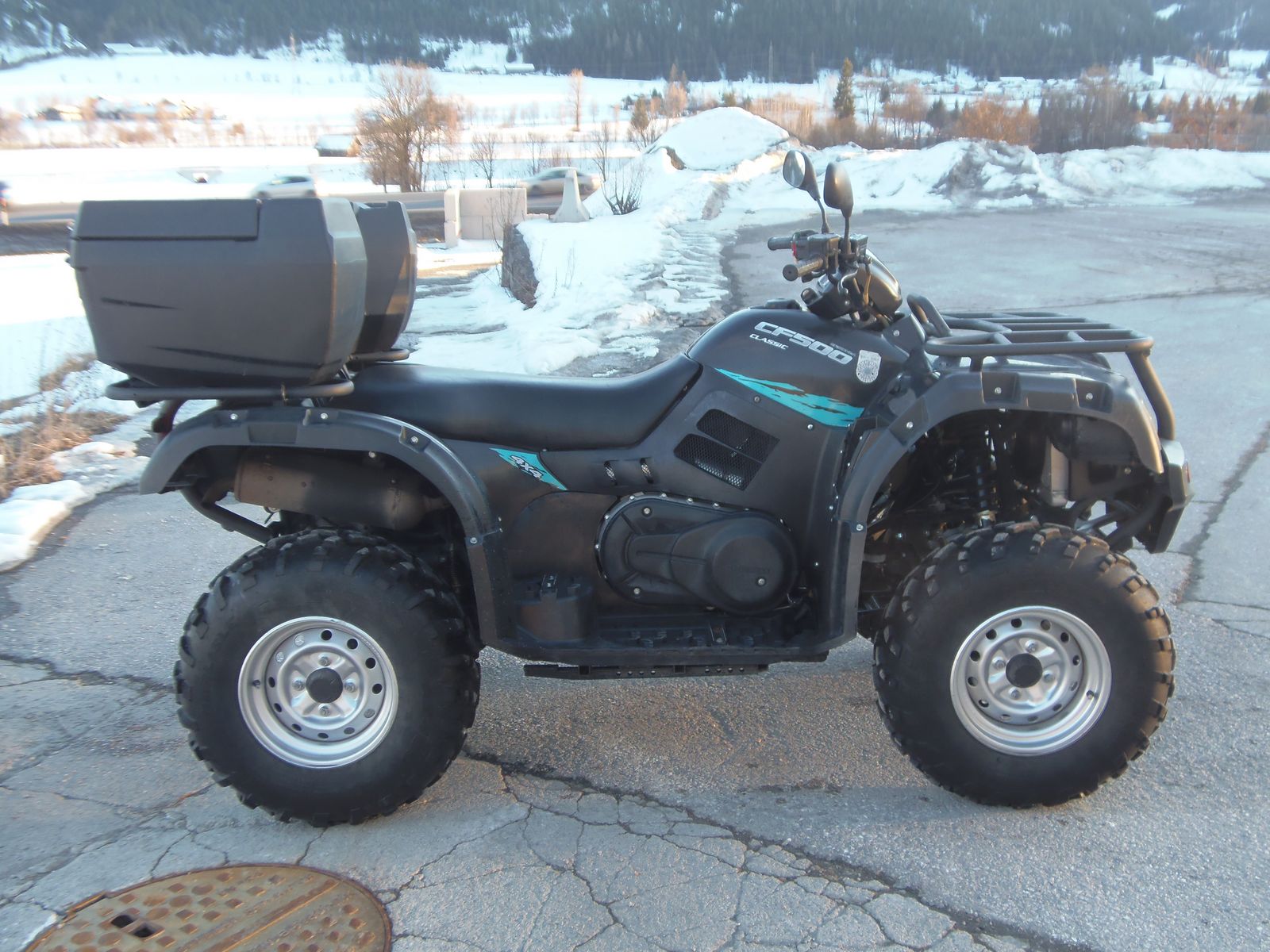 CFMoto CForce 500 One: 1-Zylinder 4-Takt Motor mit 500ccm, CVT Getriebe mit 2 Vorwärts- und 1 Rückwärtsgang, Elektrisch Zuschaltbarer Allrad und Differentialsperre, 4.600km, Bj. 2015, Koffer hinten, Service und Pickerl neu, neuwertige Reifen