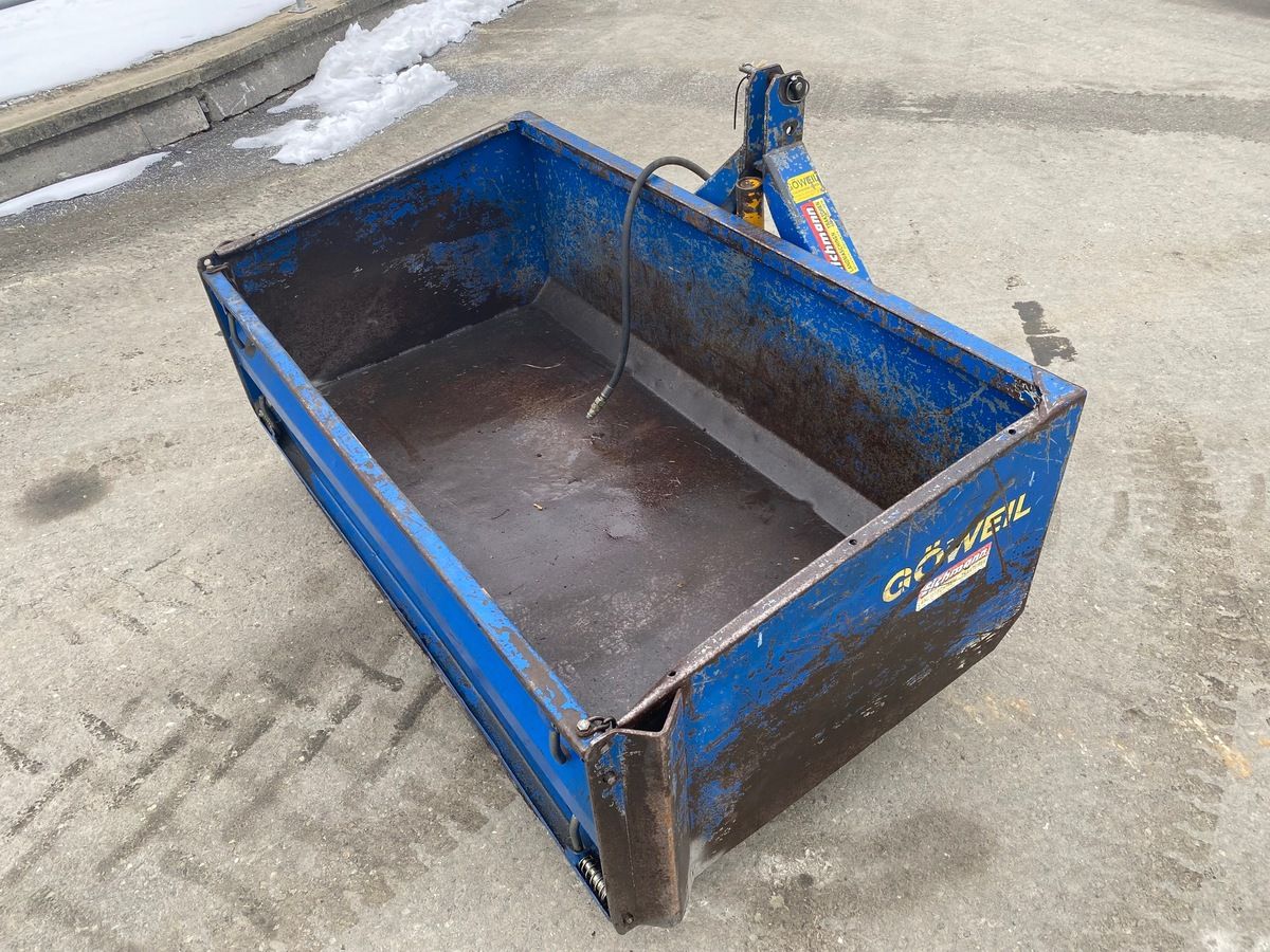 Sofort Verfügbar! // B175 // Göweil GHU 10/1850 EW - Kippmulde. Wie vom Kunden, in gutem Zustand. Ausstattung & Details: - Einfachwirkender Teleskopzylinder, stehend im Dreipunktrahmen - Dreipunktanbau Kat. I&II - Gewicht ca. (kg): 342 - Schaufelbreite (mm): 1850 - Schaufeltiefe (mm): 1000 - Stirn/Seitenwandhöhe (mm): 600 - Flacher Schaufelboden mit aufgeschweißter Schürfleiste aus HARDOX 500 - Pendelbordwand abnehmbar - Nutzlast bis zu (kg): 3500 - Für Traktoren von/bis (PS): 40-100 - Baujahr: 2006 Besichtigung jederzeit nach telefonischer Absprache möglich! Zustellung in ganz Österreich möglich.