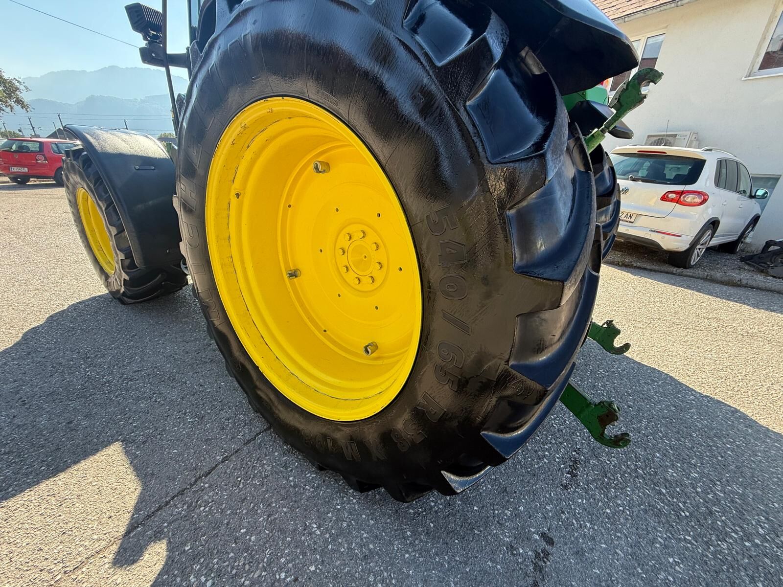 Klassifizierung: Gebrauchtmaschine; Getriebetyp: Manuell; Hydraulische Lenkung: Ja; Anzahl der Steuergeräte doppeltwirkend vorne: 1; Kreuzsteuerhebel Frontlader: Ja; Kreuzsteuerhebel Frontlader Art: Mechanisch; Zwischenachssteuergerät doppeltwirkend: Ja; Oberlenker hinten: Ja; Oberlenker hinten Typ: Mechanisch; Kategorie Unterlenker hinten: Kat. 2; Heckstabilisator Typ: Mechanisch; Steuergeräte doppeltwirkend hinten: Ja; Anzahl der mechanischen Steuergeräte: 3; Außenbedienung Heckhydraulik: Ja; Anhängevorrichtung: Ja; Arbeitsscheinwerfer vorne: Ja; Art der Arbeitsscheinwerfer (vorne): LED; Arbeitsscheinwerfer hinten: Ja; Art der Arbeitsscheinwerfer (hinten): LED; Heckzapfwelle Drehzahl: 540/540E/1000; Sitzfederung: Ja; Motorhersteller: John Deere; Reifenhersteller: Michelin; Letzter Tätigkeitsschwerpunkt: Allgemeine landwirtschaftliche Arbeit