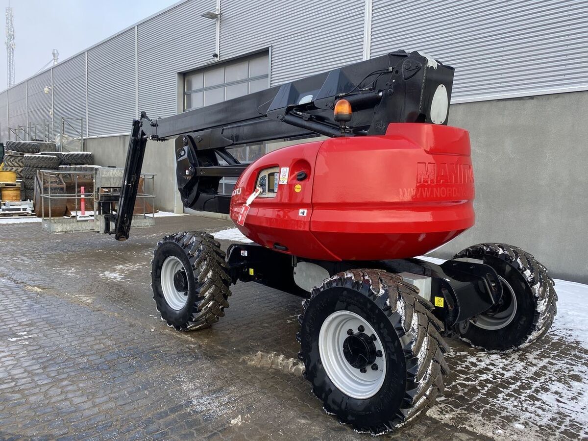== More details (EN) == Classification: B Steering: 4 wheel steering Wheel front brand: Solideal Wheel front type: Tractor/industry patern Wheel rear brand: Solideal Wheel rear type: Tractor/industry patern Rotation chassis (degrees): 360 Rotation basket (degrees): 180 Tilt jib (degrees): 140 Lifting speed up/down (sek.): 0,8 Gradeability (%): 40 Permissible leveling (degrees): 9 Platform height: 18000 mm Outlay: 12000 mm Outlay height: 8000 mm Platform width: 800 mm Platform length: 2100 mm Free height: 430 mm M-Tec tracking system Continuous rotation 230V to the platform