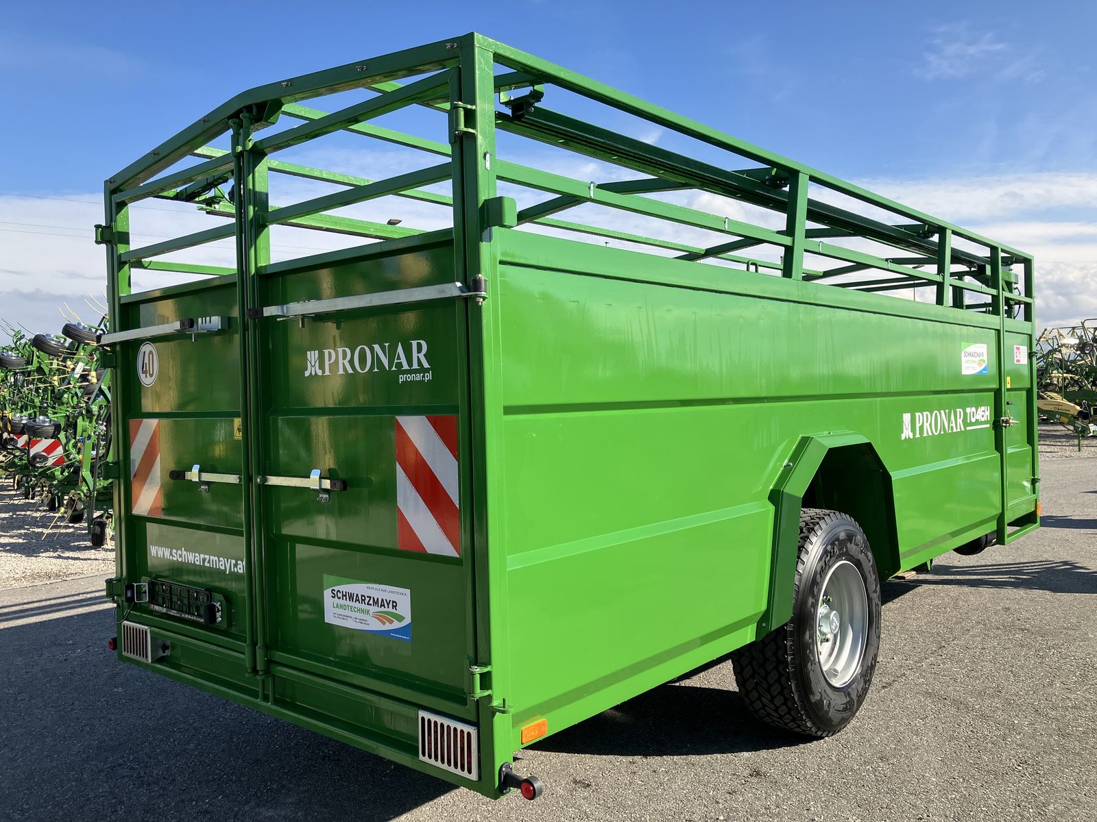 Nr. 68564 Viehtransportanhänger hydraulisch absenkbar Serienausstattung: - Riffelblechboden - Profilblechwände - Seitliche Tür vorne an der rechten Seite des Aufbaus - Doppelflügelige Hecktür - Universal-Deichsel zur Unten- und Obenanhängung mit starrer Zugöse Ø40 - 2-Leiter Druckluftbremse - Kurbelbremse - Teleskopstützfuß mit Getriebe - Hydraulische Senkung der Pritsche für einfache Verladung - Hydraulische Stoßdämpfer - Planengestell - Schnürplane - Hinterer Unterfahrschutz homologiert - LED-Beleuchtungsanlage 12V mit seitlichen Umrissleuchten - Keile mit Halter - Lackierung: grün RAL 6010 PRONAR Zusatzausrüstung - CoC-Ausführung: 40 km/h-Zulassung gemäß EU-Verordnung Nr. 167/2013 incl. 2-Leiter-Druckluftbremse mit ALB Premium, zul. GG 9000 kg, Nutzlast 7000-7850 kg (je nach zusätzlicher Ausrüstung) - Hydr. Schrägstützfuß mit Kugelventil - Gummiboden (15 mm dick) - Innere Trennschiebewand - Innere Sicherheitsgitter für die Hecktür - LED-Innenbeleuchtung Das Verkaufsteam der Fa. Schwarzmayr zeigt Ihnen das Gerät/Maschine gerne und bittet um Terminabsprache zwecks Besichtigung bei uns am Betrieb. Wir sind auch Samstags bis 12:00Uhr für euch da! Gerne unterbreiten wir Ihnen auch ein Angebot per Mail. Wir freuen uns auf einen Besuch oder auf eine Anfrage.