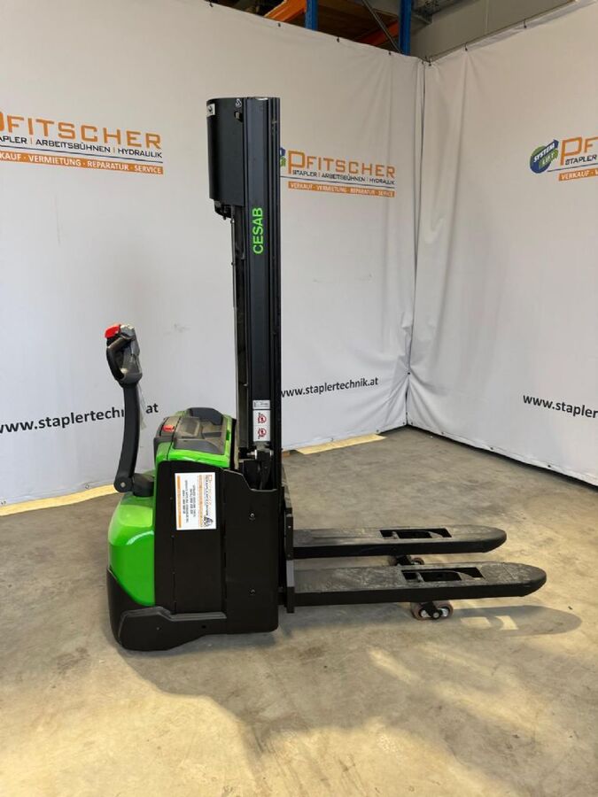 Bauart: Lagertechnik / Hochhubwagen, Tragkraft: 1400kg, Hubhöhe: 4105mm, Freihub: 1100mm, Gabellänge: 1150mm, Batterie: GNB PzS Bj. 2024 24V 225Ah , Bereifung vorne: Vulkollan Tandem , Bereifung hinten: Polyurethan Einfach , Sonderausstattung: Initialhub, Sonderausstattungbeschreibung: integriertes Ladegerät, Pin-Code Tastenfeld Fingerschutz Plexiglas Proportionalsteuerung von Hub/ Senkung