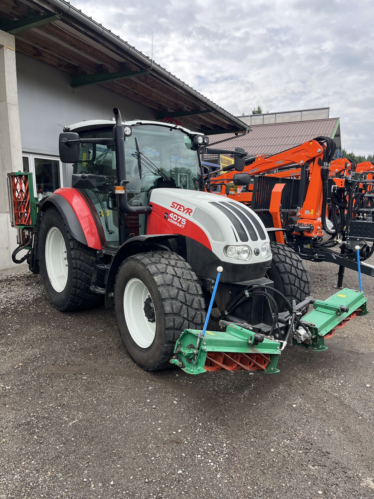 Schöner Steyr Kompakt 4075 mit Spindelmäher, Klima, Kommunalbereifung, sofort einsatzbreit