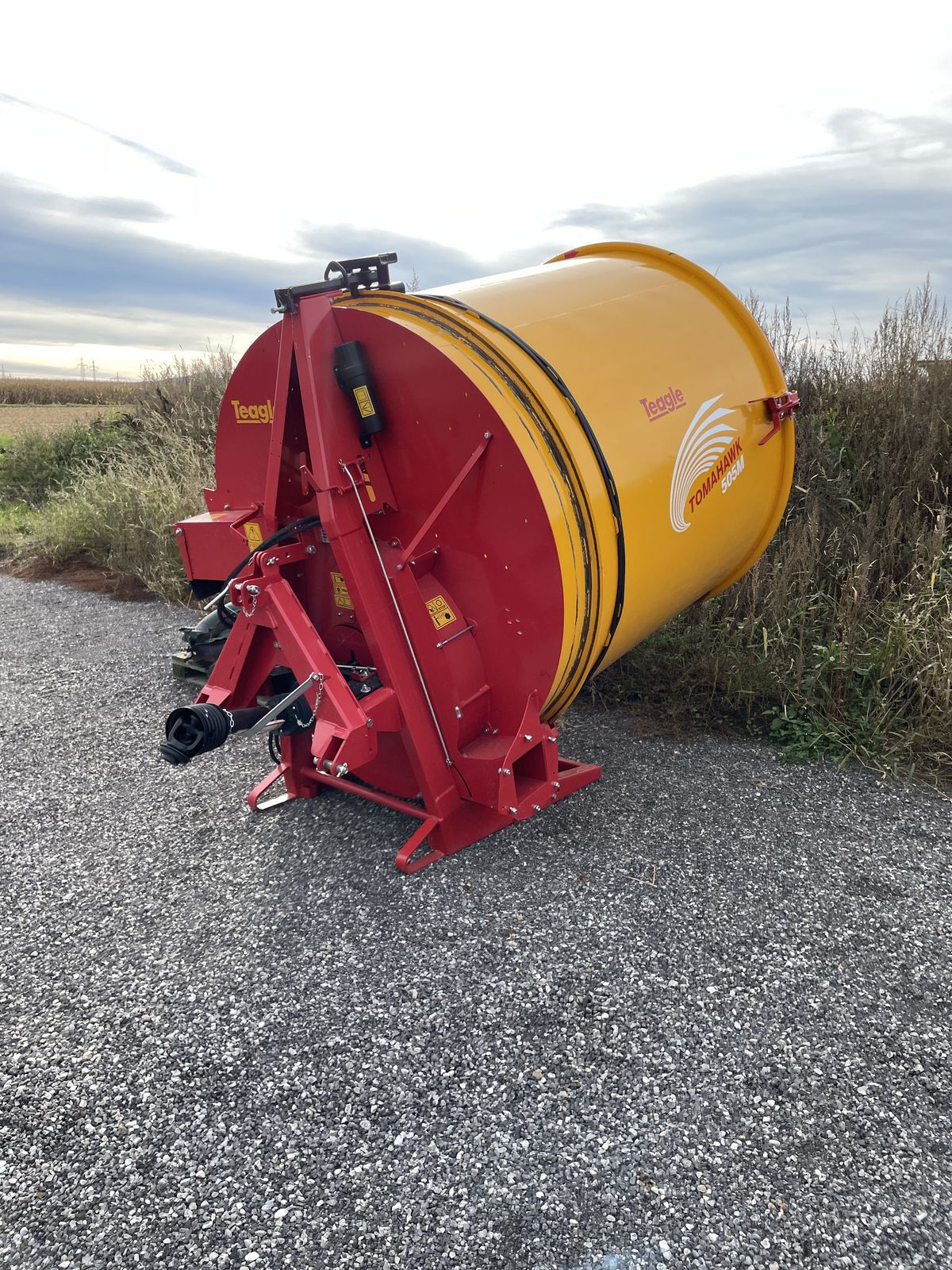 Neue Tegle Strohmühle Siebgröße von 10 -120 mm möglich Optional mit Drehbarem Aufwurfturm Technische Daten: Anzahl der Klingen 40 Trommellänge 1,85m Breite 1,9m Gesamthöhe(Maschine am Boden) 2,55m Leergewicht 970Kg Mittlerer Auswurf rechts Unterer Auswurf links Ein Mühlensieb (nach Kundenwunsch) Fassungsvermögen und Traktoranforderungen: Max. Durchmesser des Rundballes 1,70m Anzahl der mitnehmbaren Rundballen 1 Empfohlene min. Traktorleistung 90PS Zapfwellendrehzahl 1000U/min