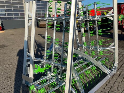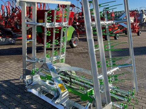 Unsere Greenkeeper ist super Multifunktional: – Die stabilen Striegelzinken schlitzen die Grasnarbe ein und lüften damit den Boden (einbringen von Sauerstoff) – Der Feuchtigkeitshaushalt wird durch gesundes Bodenleben verbessert (vermindert die Austrocknung des Bodens) – Entfernt Unkraut, abgestorbene Grasbestände und Moos – Wühlmaus- und Maulwurfshaufen werden beseitigt, Bodenunebenheiten werden ausgeglichen – Stalldung/Gülle wird zerkleinert und in die Grasnarbe eingearbeteit – Das Gras erhält mehr Licht und Luft, was den Gräsern hilft sich zu stärken und zu wachsen – Geringere Futterverschmutzung bringt höhere Futterqualität – Sehr gut geeignet zum Nachsäen oder zur Neuansaat auf kahlen Flächen – Aufgrund seiner vielen Möglichkeiten können Sie den Greenkeeper mehrmals im Jahr verwenden – Gepflegtes und stetig nachgesätes Grünland bringt oft den doppelten Futterertrag! Spezifikationen: • Feuerverzinkter, robuster, modularer Rahmen • Rahmen mit Winkelprofil Front und Rückseite • 3 Reihen mit 10mm Doppelte Zinken (60st) • 12-Stufen Tiefenverstellung • Dreipunktsbetrieb Kat. 2 • Mechanischen Verriegelung 2x Zylinder • Sehr robuste Schaniergelenke • Gleitschuhe und Eckenschutz • Hydraulik schön verarbeitet • Transportbreite 2715mm • Gewicht 635kg