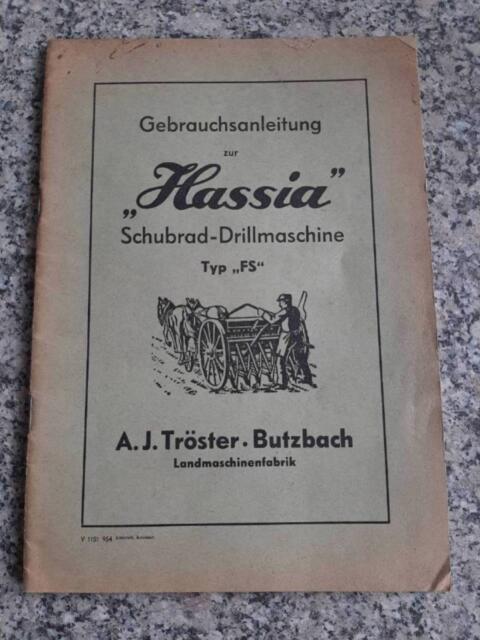 Gebrauchsanleitung Hassia Drillmaschine, Nostalgie Oldtimer, inkl. Versand für € 18, -. Blší trh Literatúra / návody na obsluhu