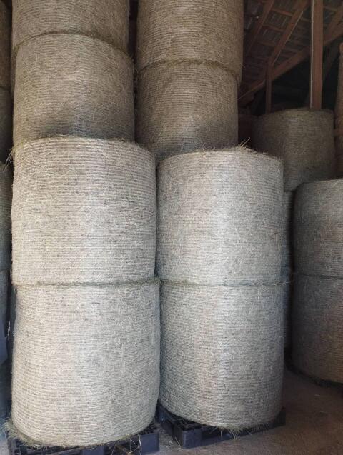 Verkaufe Heu, 2. Schnitt, Ernte 08.2025, Ampfer frei, unverregnet, Dm. 130 cm, Lieferung nach Absprache im Umkreis möglich. Burza krmív Seno