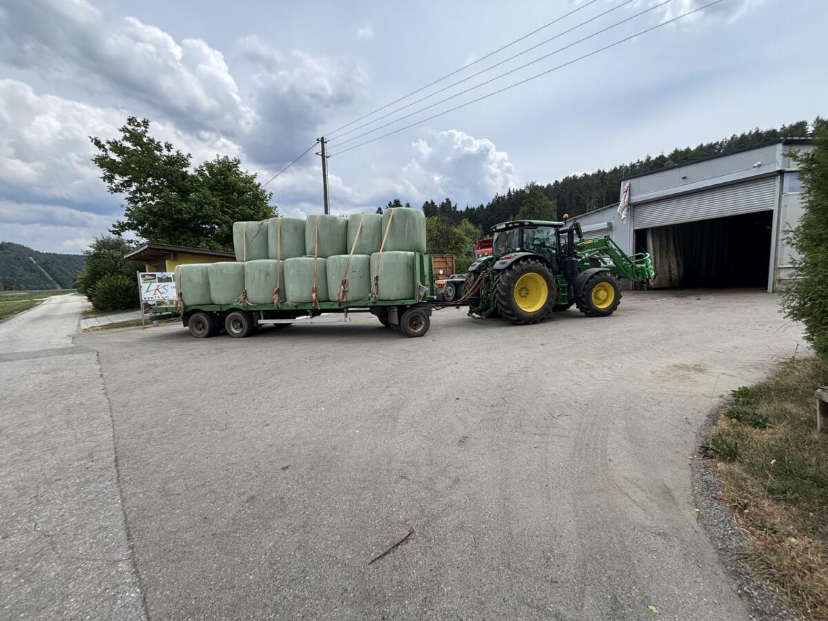 BIO Heuballen 1. Schnitt 2025 (76 Stk) und 2. Schnitt 2025 (21 Stk), Dm. 125 cm, hallengelagert. Mit BIO-Zertifikat. Forstanhänger für Verladung vorhanden. Ungeschni