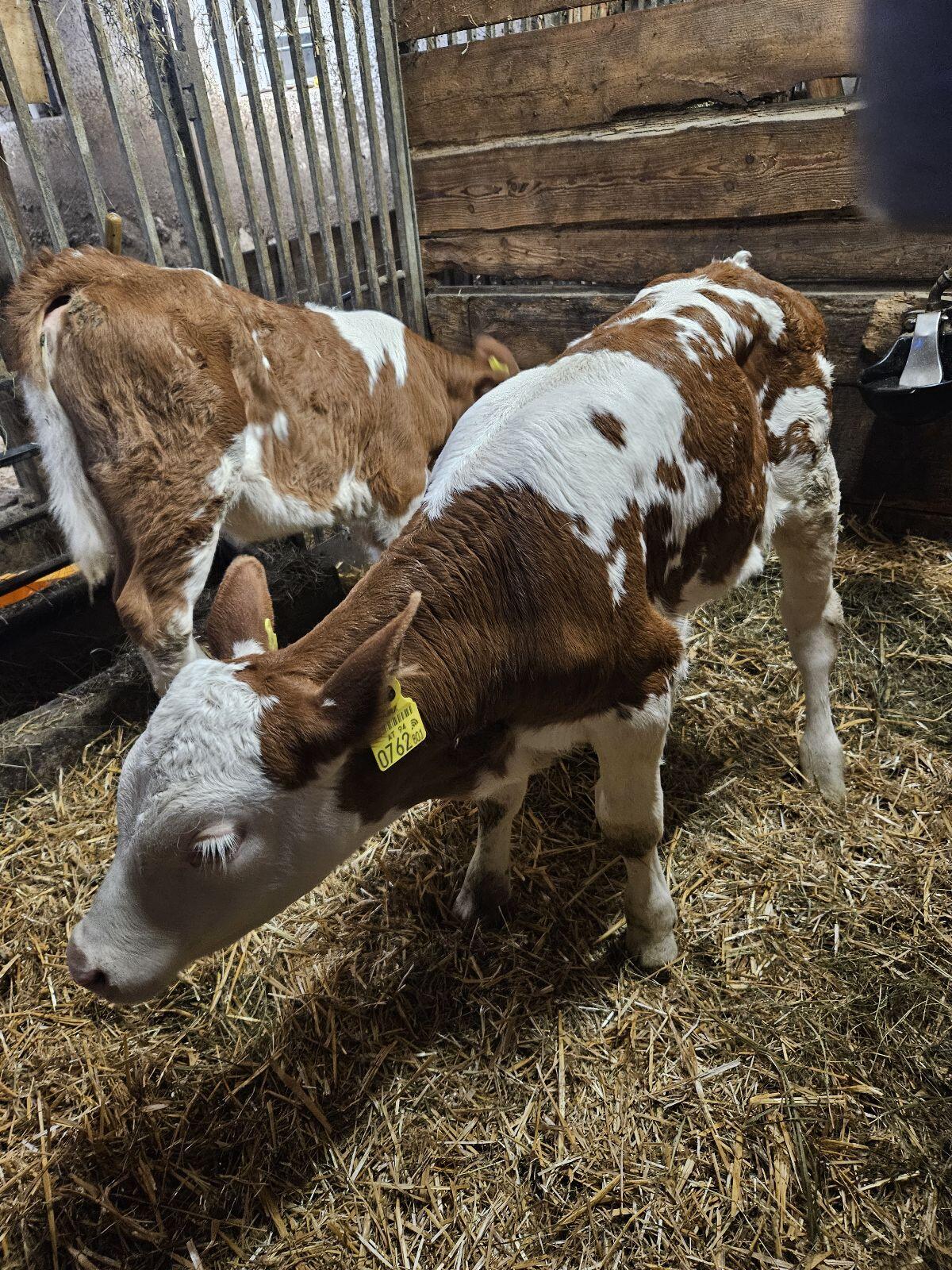 Wir verkaufen unsere weiblichen Zwillinge (Bio Fleckvieh) zur Weitermast. Sie bekommen derzeit ca. 2x5 l Milch und fressen schon zu. Sind sehr freundlich, wir legen großen Wert auf Umgang und Nähe zum Tier. Geboren 31.8.2025 (5 Wochen+). Abholung ab sofort möglich.