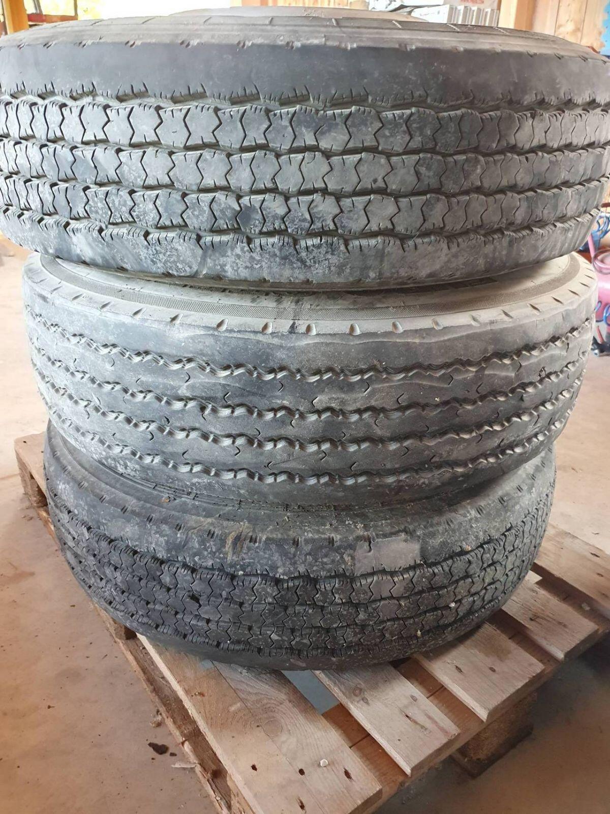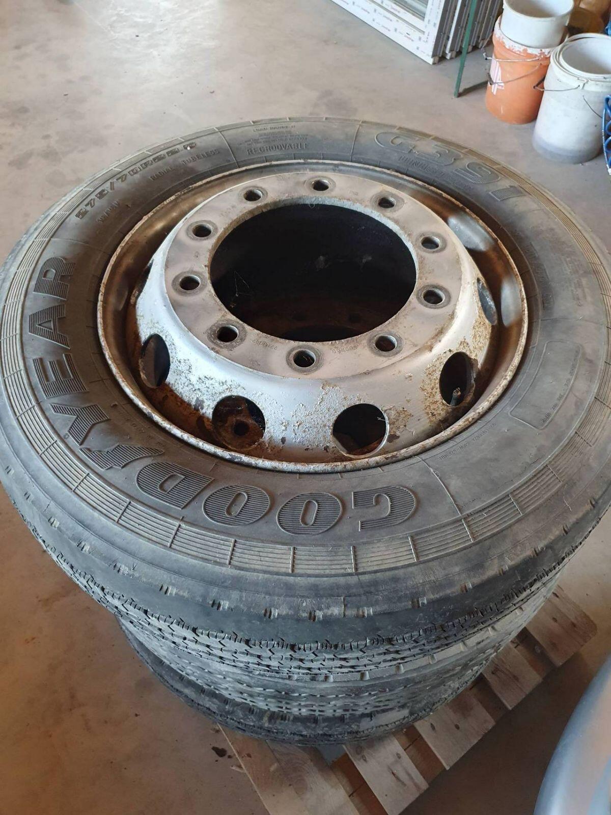 € 100,- für alle drei, mit Felge. Verkaufe 3 Stk. 275/70R22.5, waren auf einem LKW Wohnmobil montiert und haben ca. 12.000 km gelaufen. Die Reifen sind nicht rissig, LKW stand immer in der Halle. Produktionsdatum 4100.