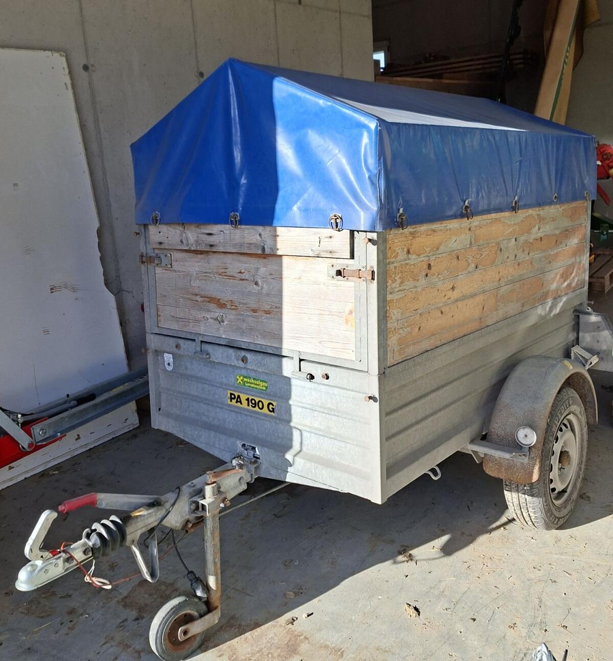 Gut erhaltener Hänger, auflaufgebremst, innen mit Gummimatte herausnehmbar, neue Reifen, neues Pickerl bis Februar 2027. Preis VB.