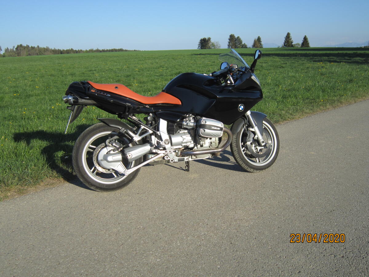 Schöne BMW R1100S, seit ein paar Jahren wegen Zeitmangel nicht gefahren und dafür zu schade. Sie ist Bj. 1998 und hat ca. 45.000 km. Es ist ein Edelstahl-Sportauspuff mit Kat sowie einige Carbonteile verbaut. Die Maschine hat ABS, Griffheizung sowie 2 Koffer.