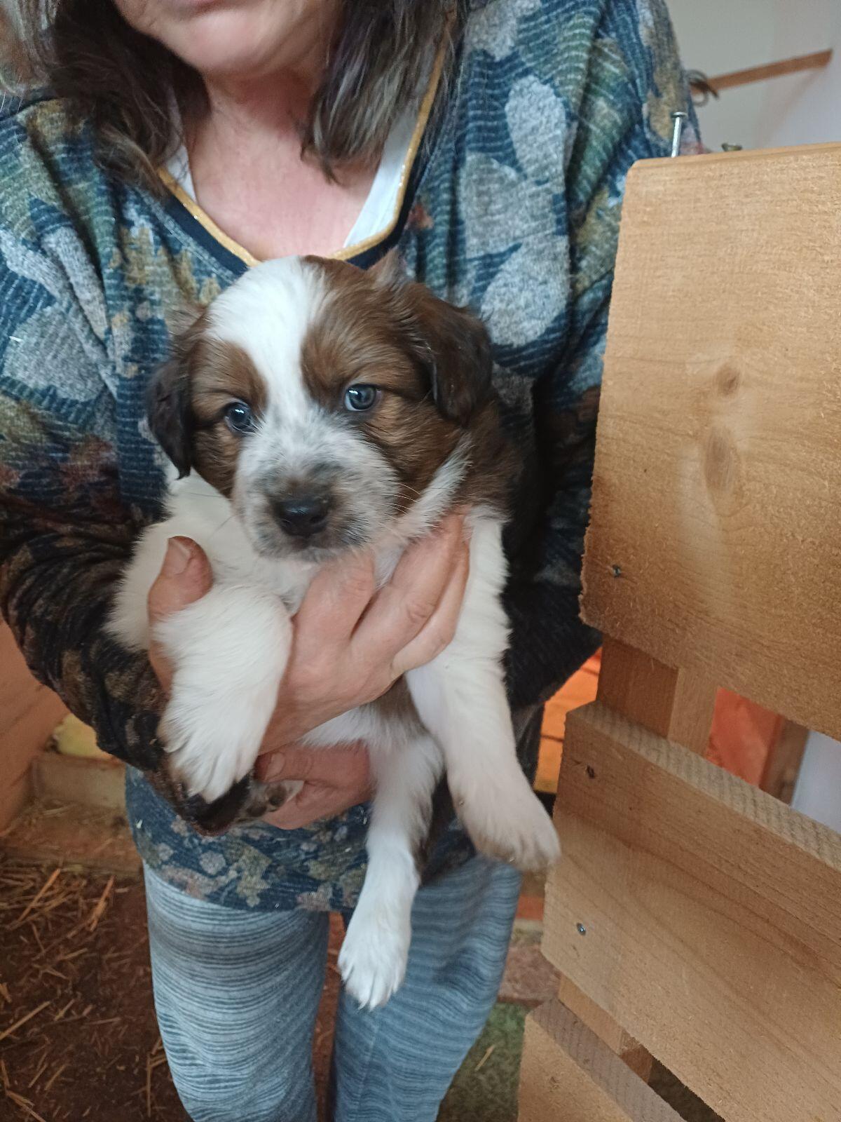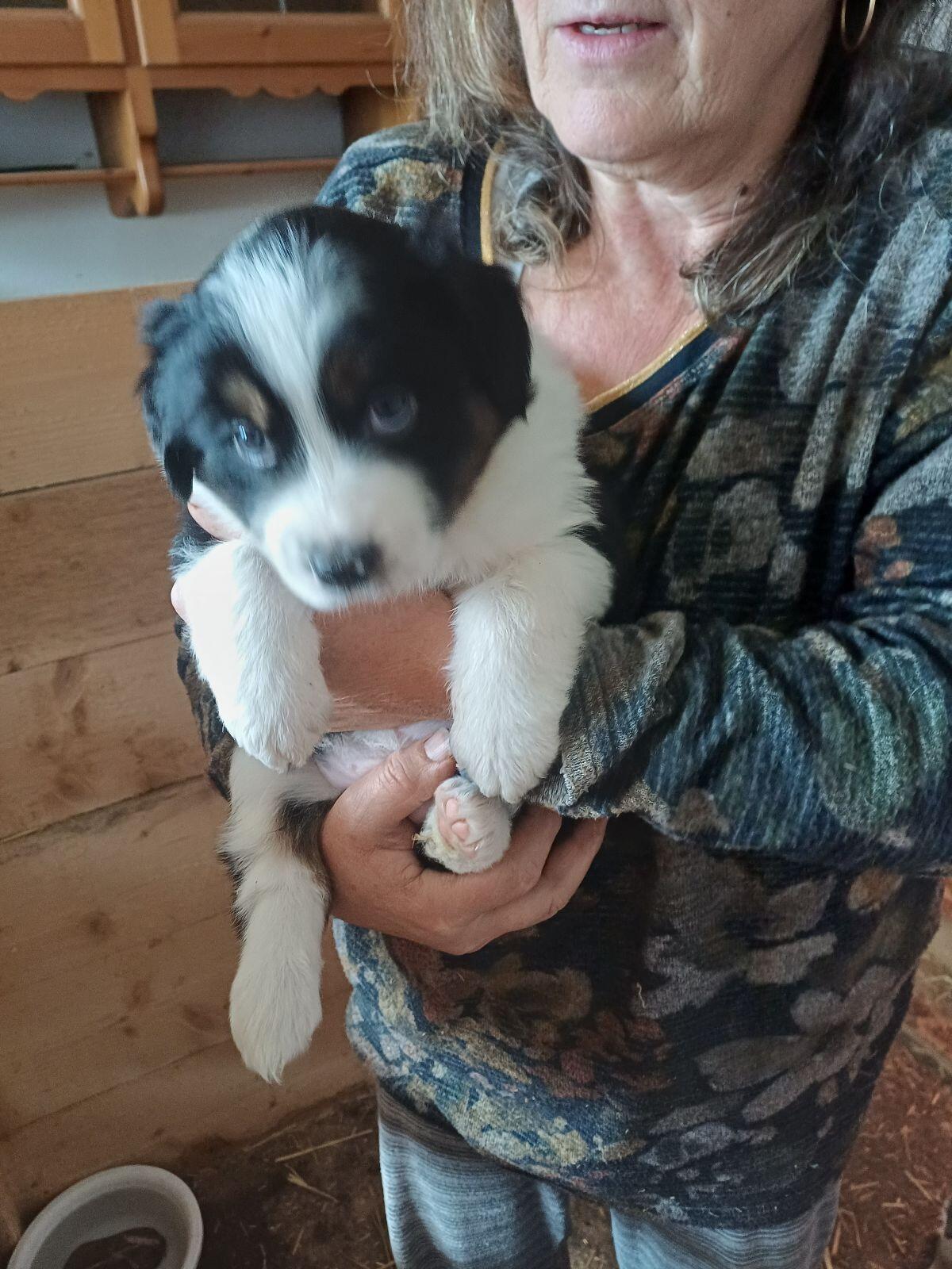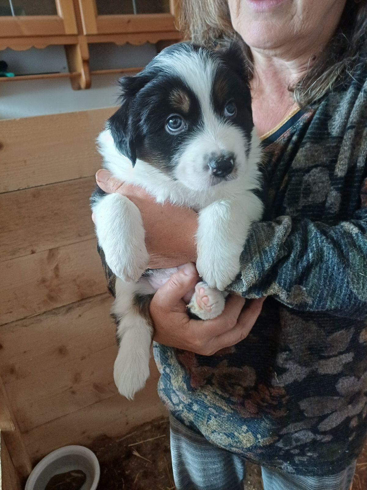 Diese 4 Border Collie Australian Shepherd Rüden suchen noch ein neues Zuhause, sind am 31. August geboren, mit 8 Wochen nur an guten Platz abzugeben, werden entwurmt und gechippt, tricolore, Brown merle, Tricolore: € 1.000,-, Merle: € 1.100,-. Bei Fragen einfach melden. Mfg Martin Unterberger.