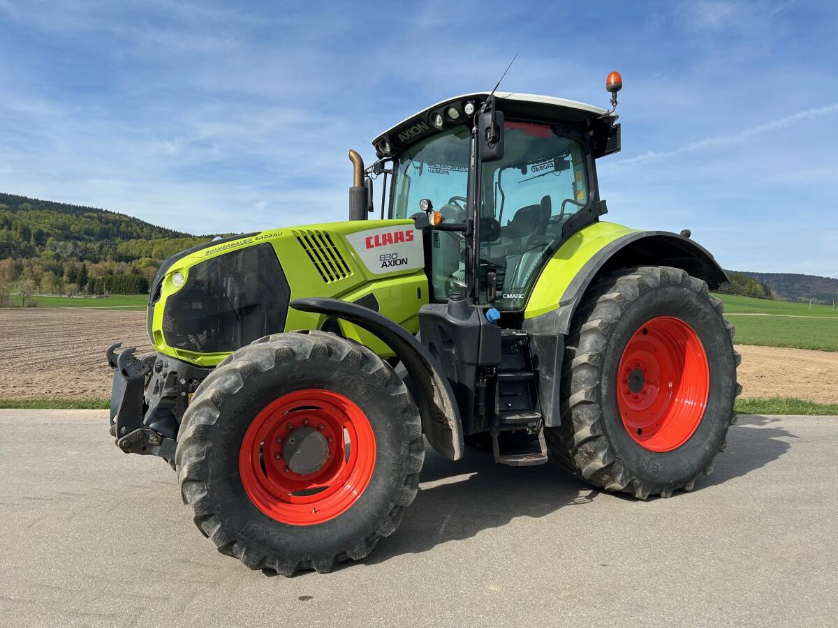Traktor Claas Axion 810 CMATIC Cebis Isobus, gebraucht, Bj. 07/2013, 168 kW Motorleistung, 50 km/h, CVT Getriebe von ZF, Bereifung vorne: 600/65R30, hinten: 710/70R42, 5.500 mm Länge, 2.650 mm Breite, 3.450 mm Höhe. Vorne: 2 Stg. DW, 1 Lecköl, Frontkraftheber. Hinten: 5 Stg. DW, 1 Lecköl, Load-Sensing, Druckluftbremse 2 Leiter, hydr. Anhängerbremse, Eigengewicht: 9.925 kg, MwSt. ausweisbar. Keine Gewährleistung für Satz- oder Druckfehler und Irrtümer.