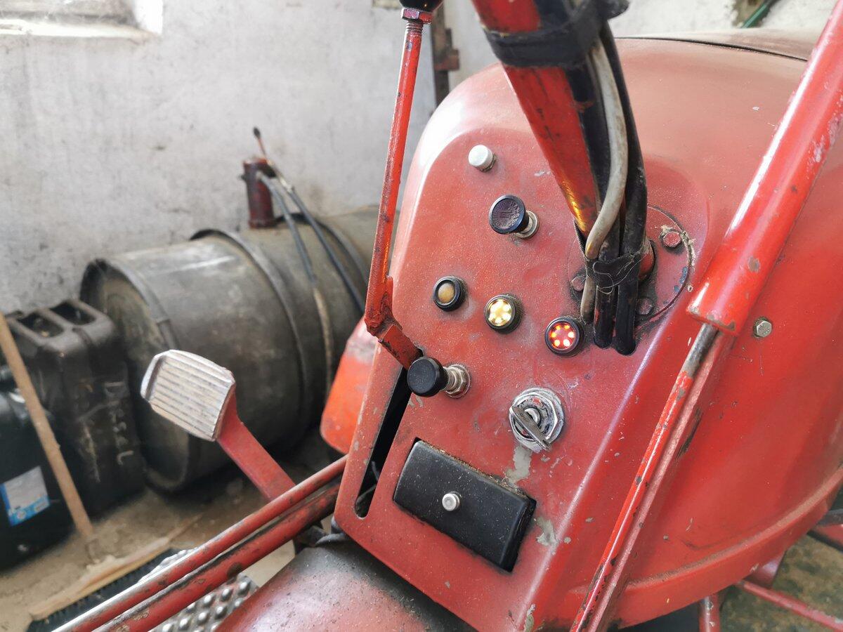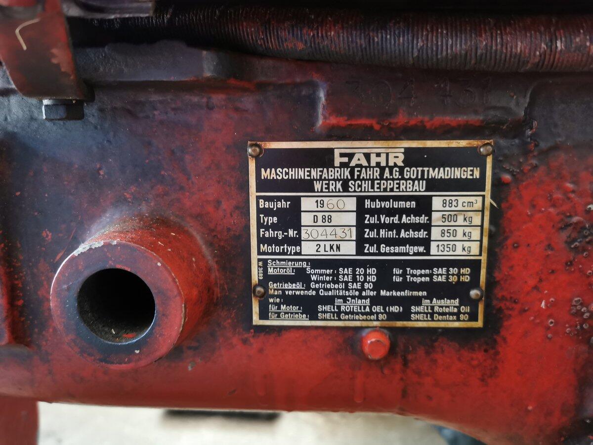 Bj. 1960, 15 PS, TÜV 5/27, er hat hydr. und Zapfwelle. Der Bulldog wurde die letzten 30 Jahre nur relativ wenig benutzt, im Schnitt ca. 2-5 mal pro Jahr für wenige Bstd. zum Holztransport oder für Grünschutabfuhr. Zwischen den Ölwechseln hat er keinen zusätzlichen Ölverbrauch. Auf der Ackerschiene ist zusätzlich ein Kugelkopf angebracht, der einer Autoanhängerkupplung entspricht. Eine breite 2. Ackerschiene wird mitgegeben, ebenso das komplette serienmäßige Mähwerk, das derzeit nicht angebaut ist. Der Bulldog befindet sich nicht an meinem Wohnort, sondern in Brunn (bei Ehingen am Hesselberg, PLZ 91725).