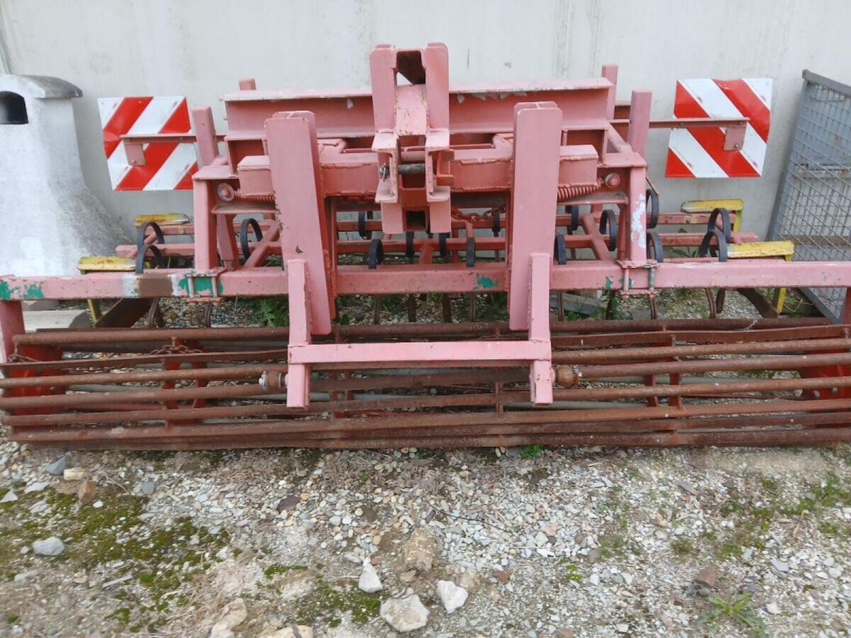 Frontpacker mit Rohrstabwalze, 3-reihiger Federzinkenvorsatz mit Randblech.