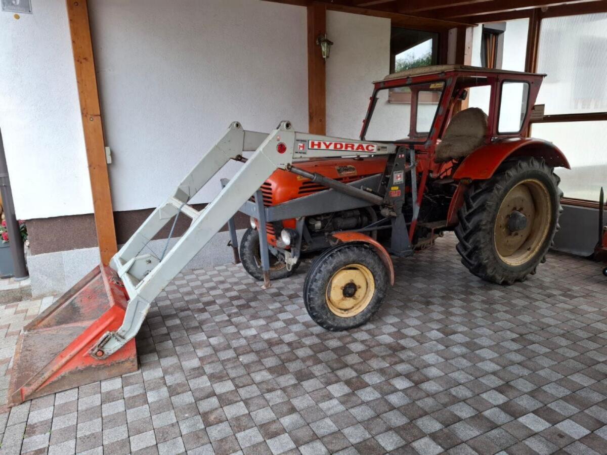 Hydrac Frontlader mit Konsole zu Steyr 288/290, mit 100 cm Schaufel und Dunggabel.
