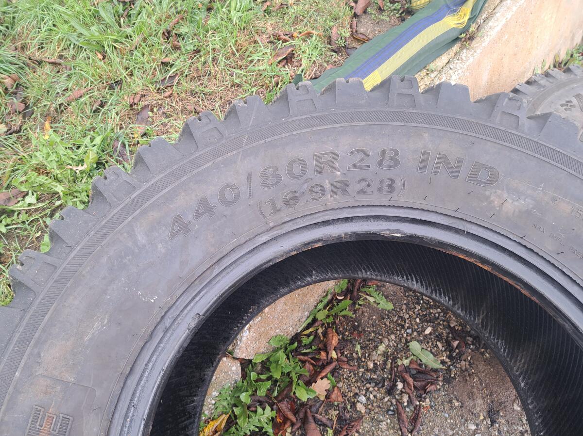 Kommunalreifen 440/80R28 mit Spike und 540/80R38, Profil ca. 3-3,5 cm.