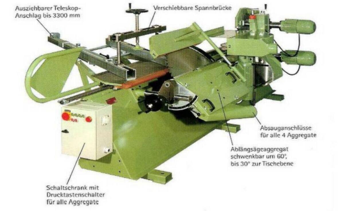 Krüsi ZA66 mit schwenkbarem Abschnittblatt. Guter Zustand. Zapfenschneiden und Ablängen in einem Arbeitsgang.