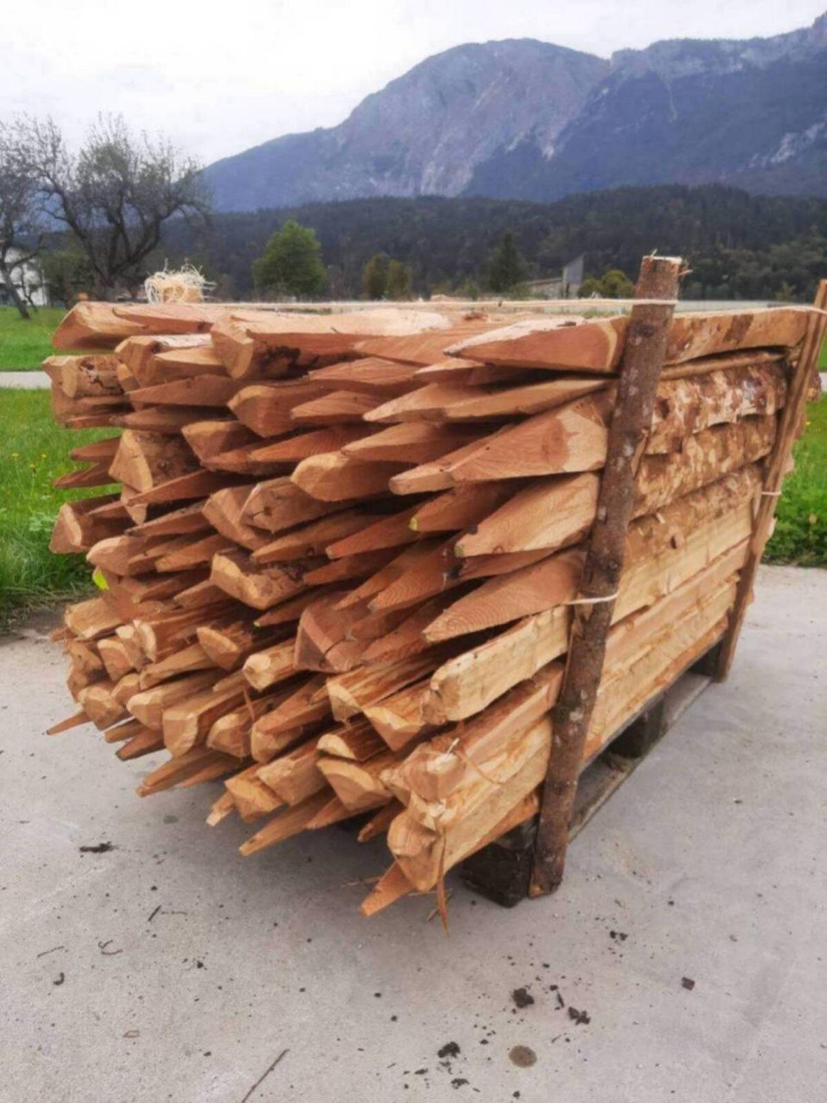 Verkaufe 2x 50 Lärchenpfähle, sehr enge Jahresringe, kaum Splintholz, ohne Rinde, gespranzt, Länge: 160 cm, € 4,-/Stk.