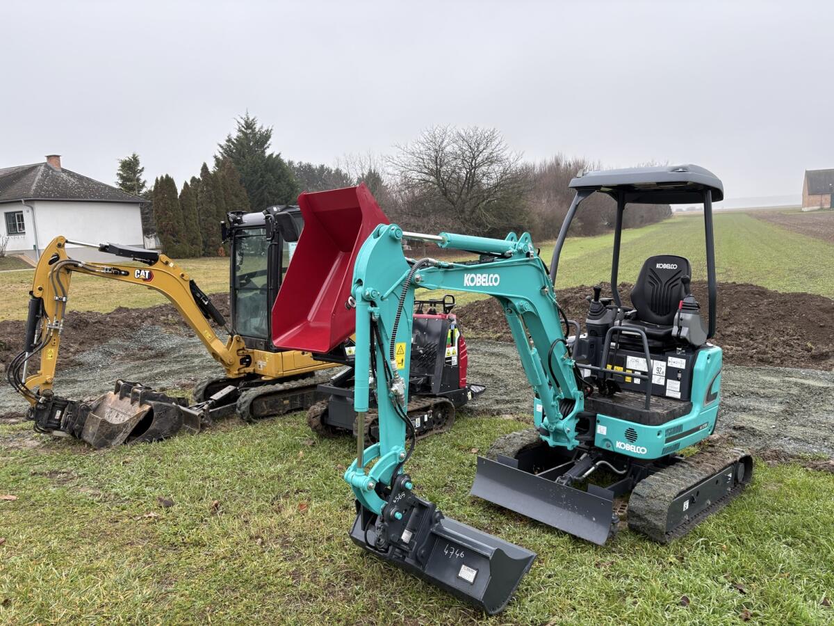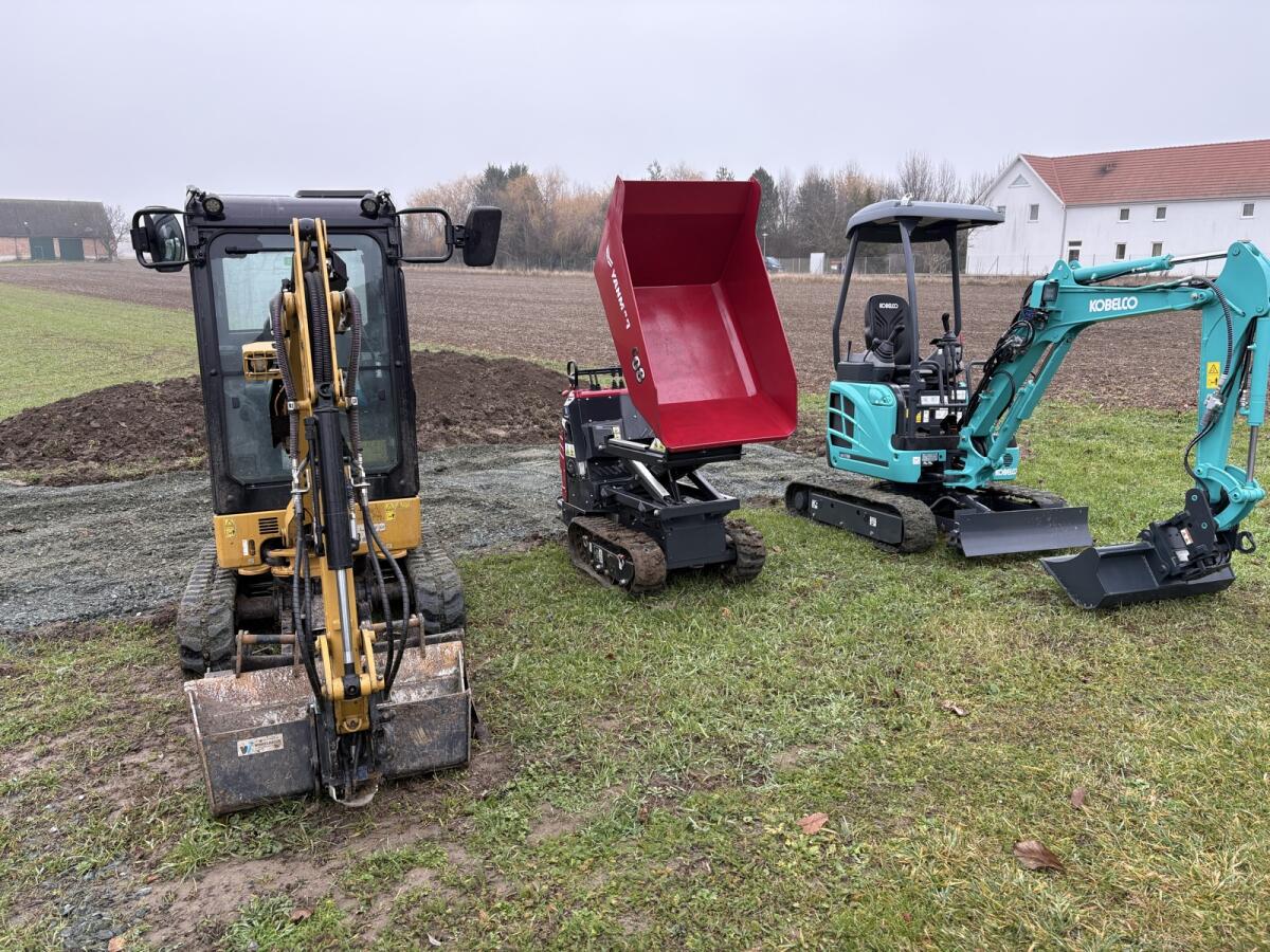 Minibagger (2 t-Klasse) zu mieten (auch mit Fahrer), Grabtiefe 2,3 m, auch mit Fahrer zu mieten, Mietpreis Gerätemiete (inkl. MwSt.): Per Tag = € 110,- (inkl. 8 Bstd./Tag), per 7 Tage = € 550,- (inkl. 56 Bstd./Woche), Wochenende (Fr-So) = € 240,- (inkl. 24 Bstd.), jede weitere Bstd. € 20,00 inkl. MwSt. Längere Mietdauer, Zustellung und Sonderlösungen auf Anfrage, Kaution € 750,00, bei starker Verunreinigung wird eine Reinigungspauschale von € 75,00 in Rechnung gestellt. Wir übergeben das Gerät getankt und würden es auch gerne so wieder entgegennehmen, bei Nichtbetankung wird eine Tankpauschale von € 50,00 in Rechnung gestellt. Alle Preise inkl. MwSt.