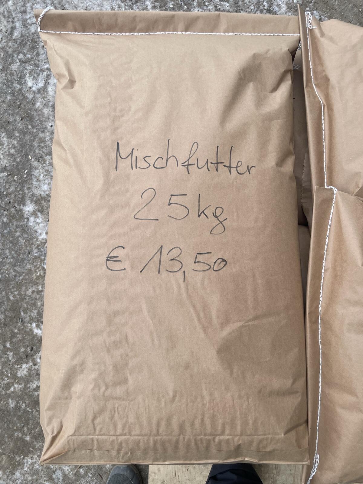 Wir verkaufen Mischfutter (Maisbruch entstaubt mit Weizen) für Hühner, Hasen, Meerschweinchen usw. 25 kg Säcke sind jederzeit abholbereit. Abfüllung in BigBag, Container, Tonnen usw. möglich. Waage ist vorhanden. Liefere gerne auch ganze Paletten mit 25 kg Sackware. Zustellung möglich. Preis gilt pro Sack.