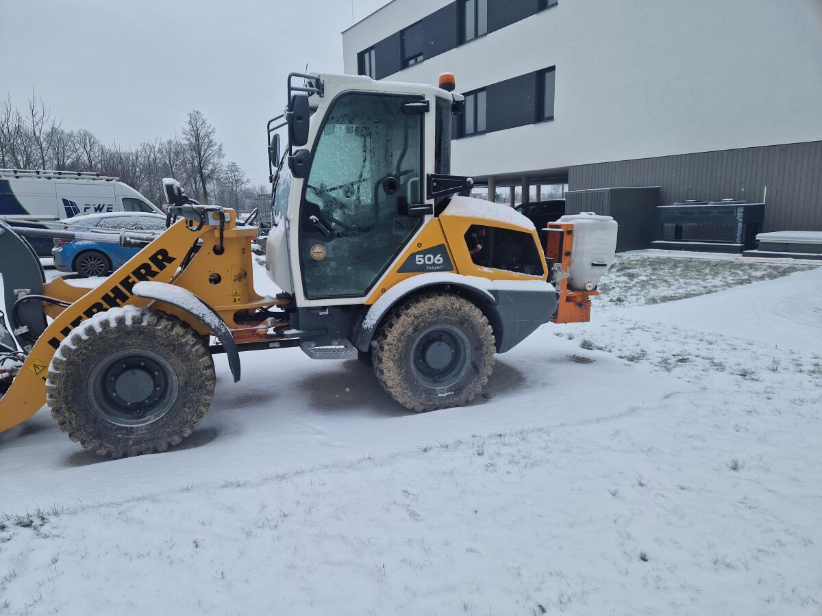 Liebherr Radlader 506 Speeder, Gerät wie neu, Reifen 90%, hydr. Schnellwechsler bis zu 30 km/h, Straßenzulassung inkl. Beleuchtung und Warnlicht, Dauerbetrieb für Anbaugeräte zuschaltbar, inkl. Schaufel mit gerader Kante 0,8 m³, inkl. Palettengabel, inkl. Streueinrichtung mit Fernbedienung im Führerhaus, inkl. Kehrmaschine mit Automatik, 2.300 mm Breite, Seitenbürste rotierend, Polaro Streuanbau für Streusalz und Splitt mit Fernbedienung in der Kabine. Preis netto.