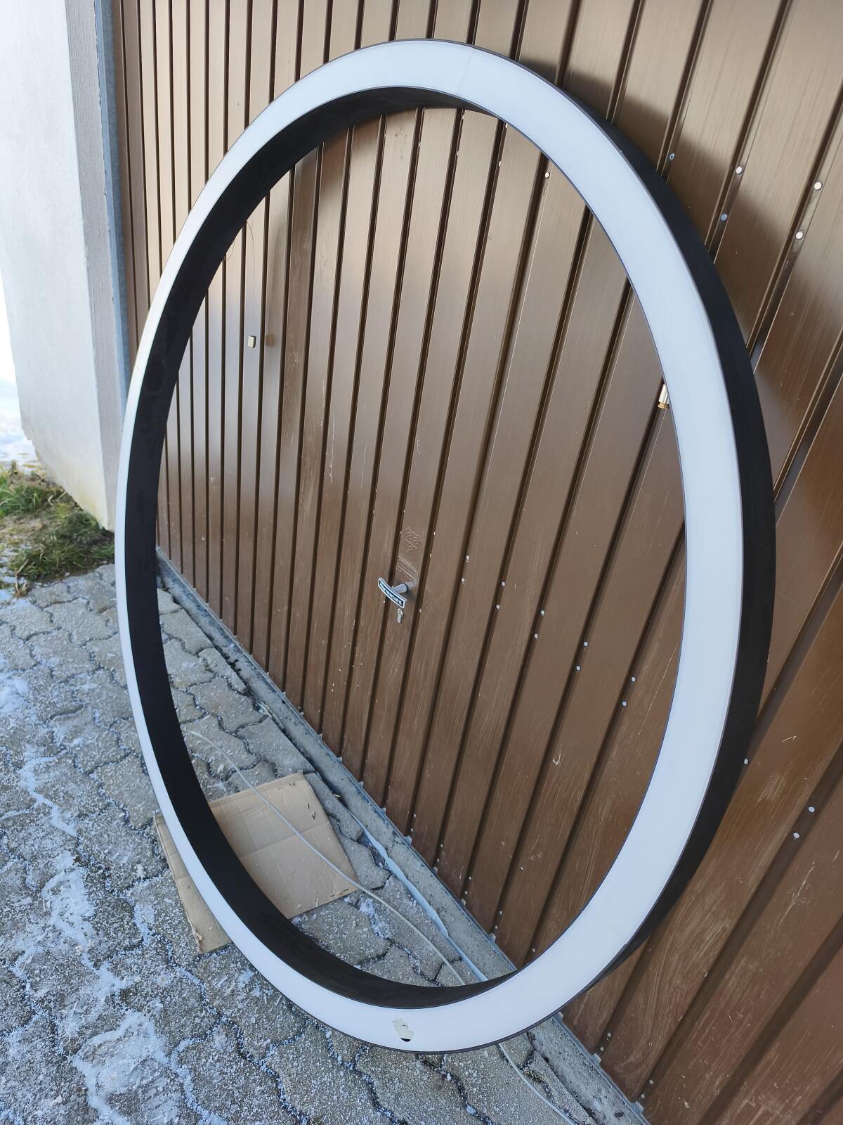 LED Ringleuchte Dm. ca. 155 cm, Ausstellungsstück mit leichter Beschädigung siehe Fotos, 3.000K, Rahmen aus pulverbeschichtetem Aluminium. Made in Austria.