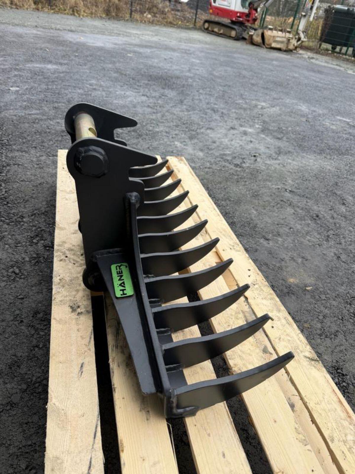 Details, HRR1000-MS01-SYM, Baggerklasse: 0,8-2 t, AB: 1.000mm, Gewicht: 36kg, Aufnahme: MS01 Symlock, Anzahl Zinken: 13 Stk., Zinkenlänge: 200mm, Zinkenbreite: 10mm, Zinkenabstand: 68mm.