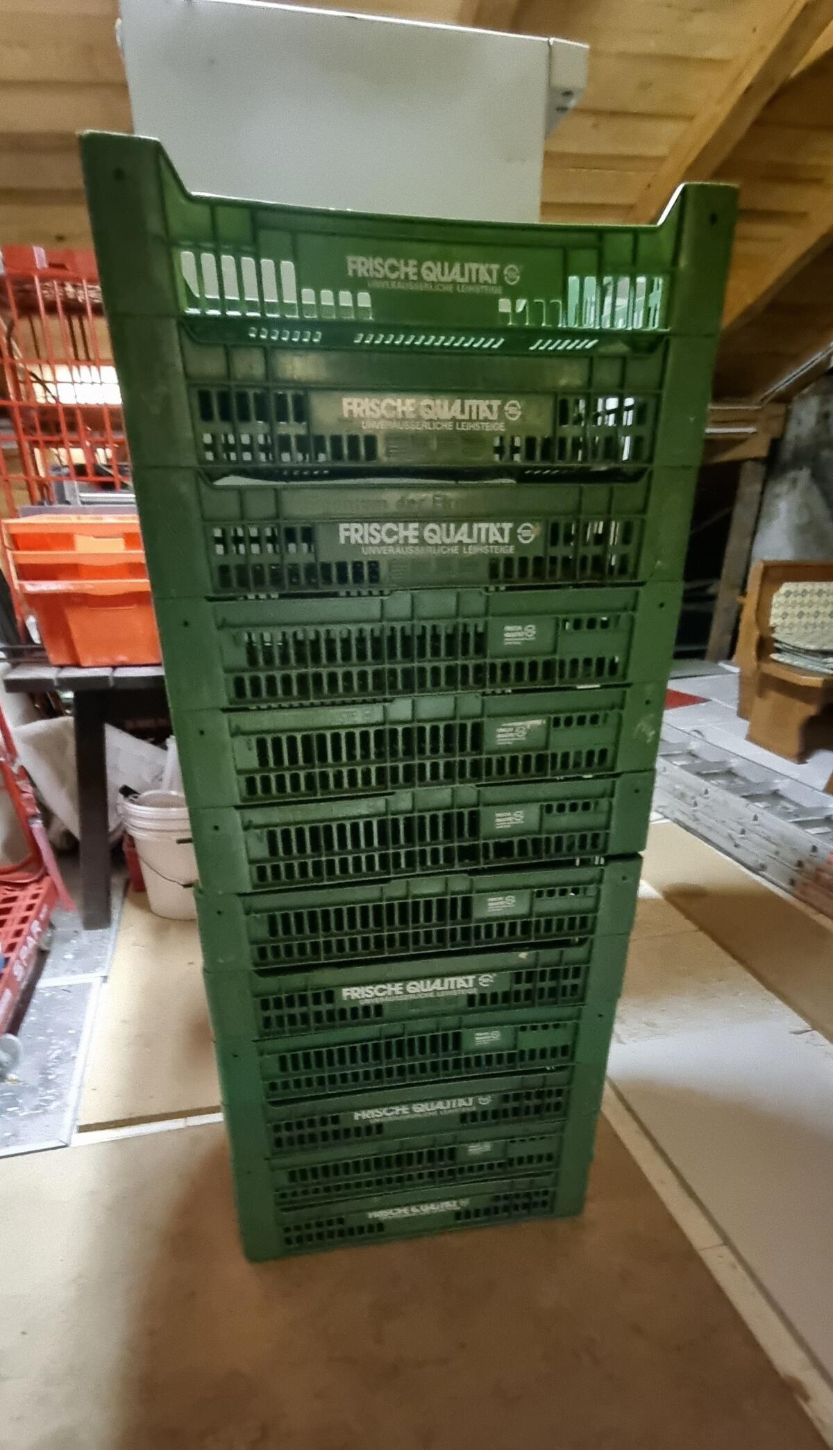 15 Stk., € 50,-. L 60 cm x B 40 cm x H 11 cm, gebraucht.
