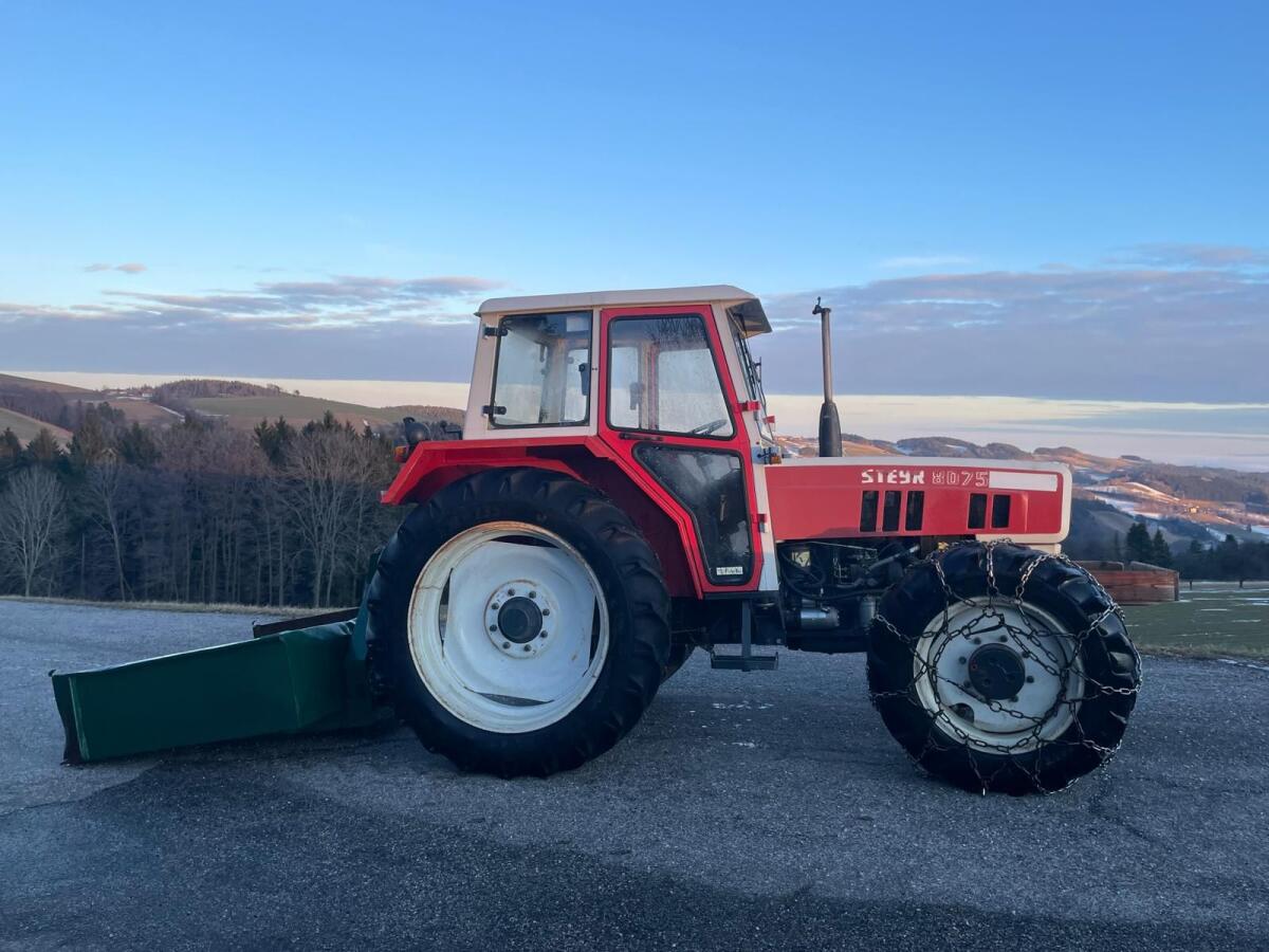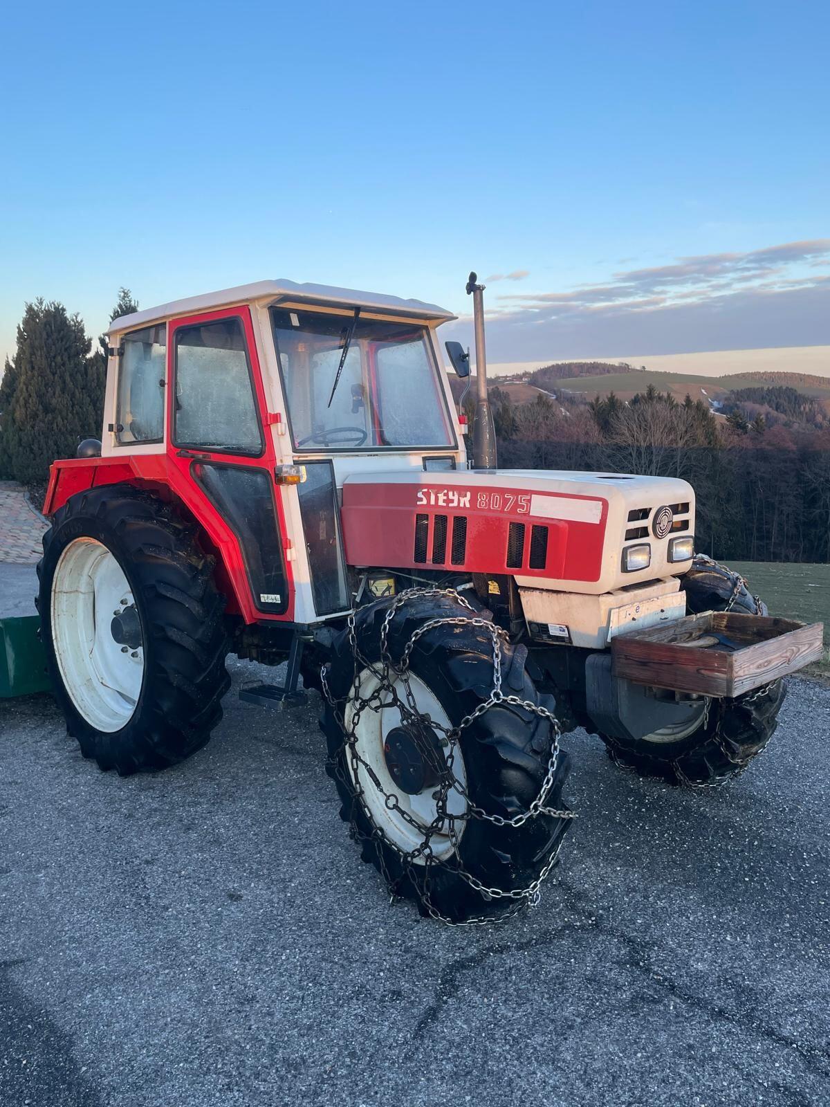 Zu verkaufen: ein Steyr 8075 mit Allrad, mit 7.500 Bstd., Bj. 1986. Optisch in einem guten Zustand. Räder hinten 13.6-36, vorne 11.2-24. 1 einfachwirkendes und 1 doppelwirkendes Steuergerät.