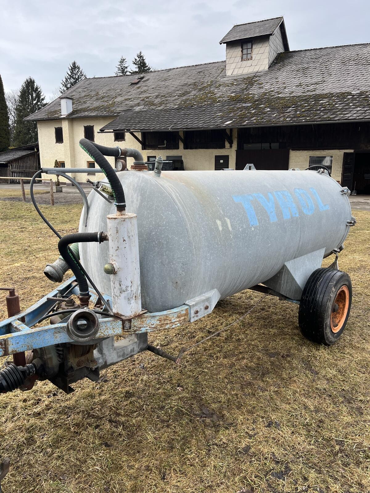 Verkaufe gut erhaltenes Vakuum-Güllefass TYROL, Größe ca. 3.000 l (geschätzt). Pumpe funktioniert einwandfrei, saugt schnell an. Mit neuem hydr. Schieber, Saugschlauch, Breitverteiler und Zapfwelle.