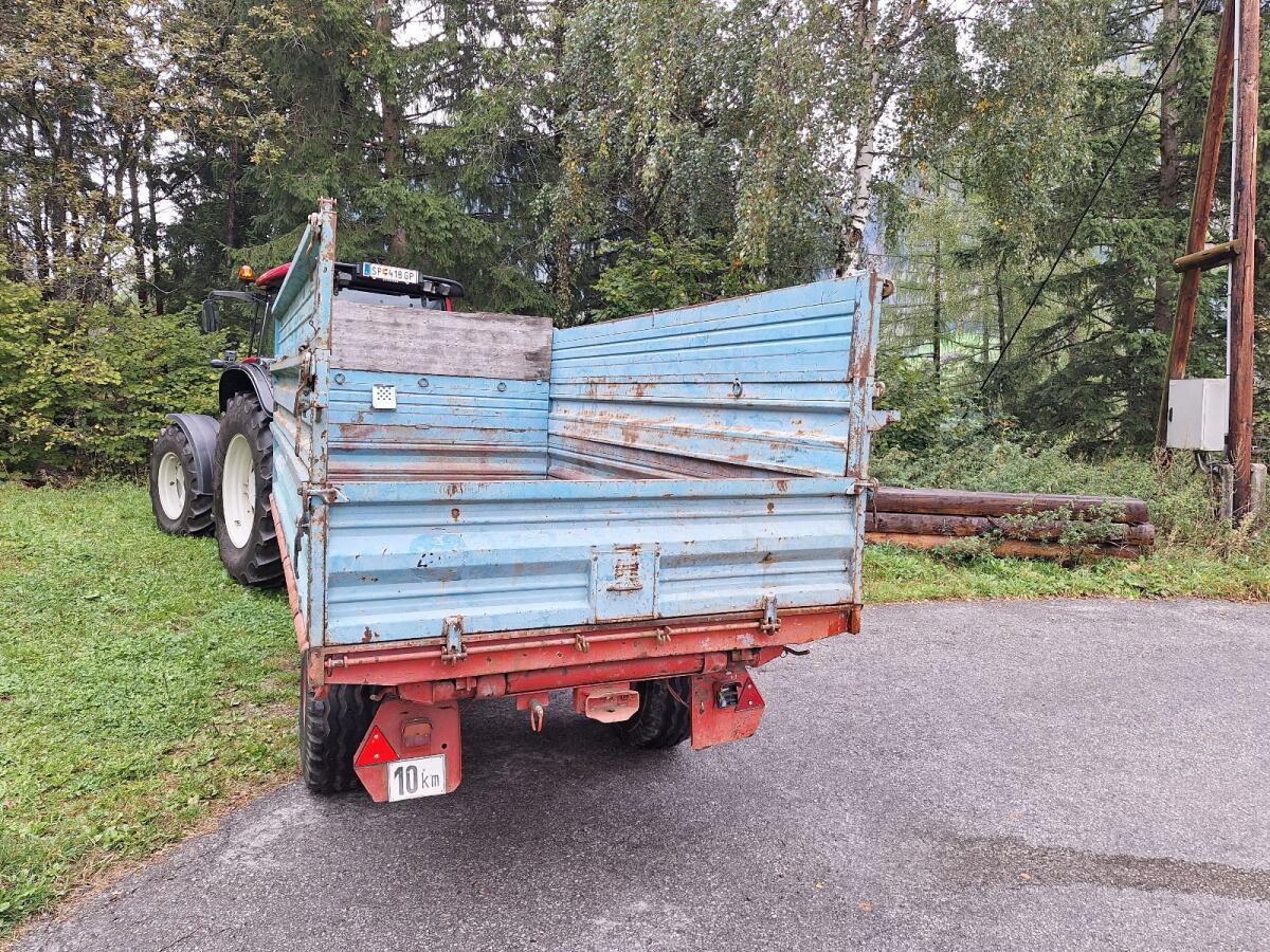 Verkaufe gebrauchten Mengele MEDK Einachsdreiseitenkipper, 4.500 kg Nutzlast, Plateau 4x2 m, inkl. 3 Aufsatzwänden, Viehtreppe, sowie 2 Rückwänden, Seilzugbremse, gebrauchter Zustand.