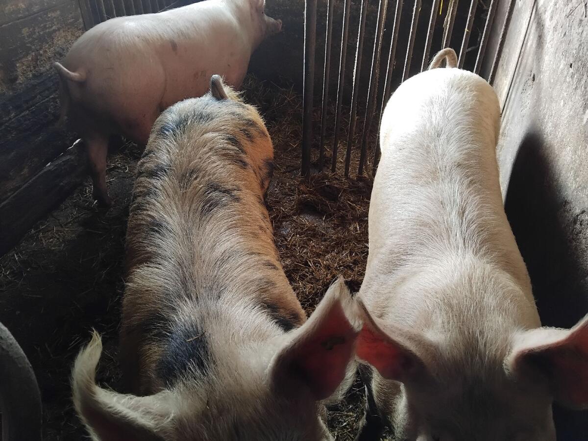 Verkaufe Mastschweine, wurden mit selbst angebautem Futter gemästet, wurden immer auf Stroh gehalten, Preis auf Anfrage.