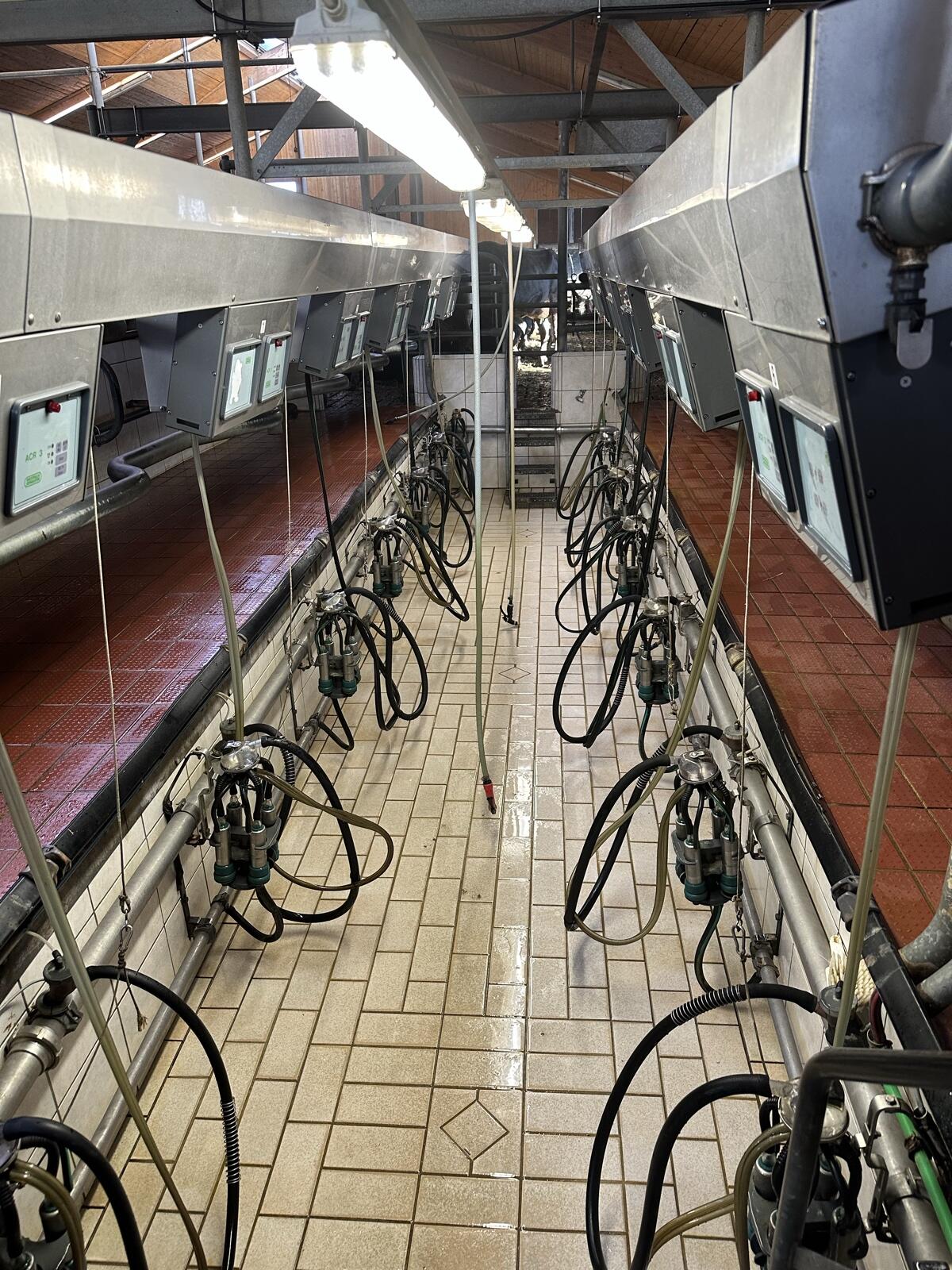 Wir bieten einen voll funktionsfähigen Fischgräten-Melkstand der Marke Westfalia zum Verkauf an. Die Anlage befindet sich in sehr gutem Zustand und ist derzeit noch im Einsatz. Der Melkstand überzeugt durch robuste, übersichtlich aufgebaute Technik, die eine einfache Bedienung und geringe Störanfälligkeit gewährleistet. Es können insgesamt 12 Kühe gleichzeitig gemolken werden (6 pro Seite). Abnahmeautomatik, frequenzgesteuerte Vakuumpumpe, pneumatische Torsteuerung.
