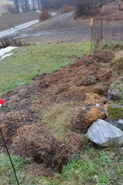 Frischer Pferdemist und durch Wurmkulturen bereits großteils zersetzter Humus für Hochbeet usw. Muss selbst aus IBC-Tank ausgegraben werden, auch größere Mengen verf