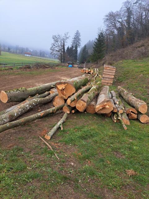 Buchenholz 4 m lange Stämme, pro fm € 65, -. Drevo Stromové kmene