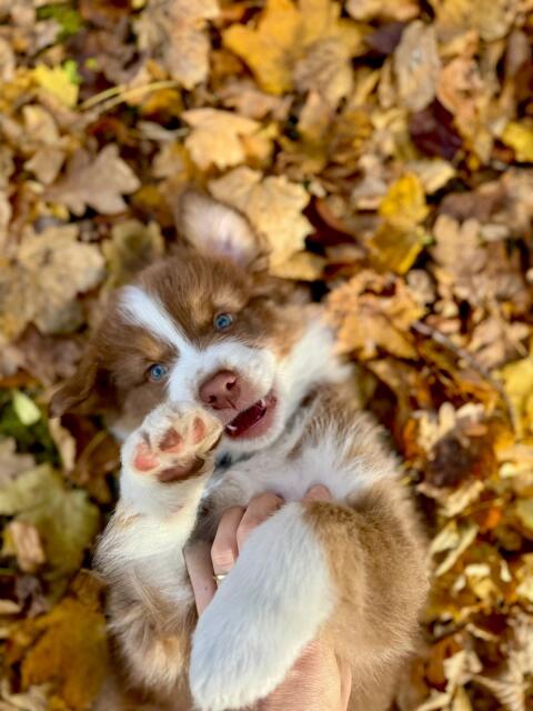 Australian Shepherd Welpen – geboren am 09.09.2025. Unsere Hündin Molli hat sechs gesunde Welpen bekommen – eine Hündin und fünf Rüden. Molli und der Vater sind auf