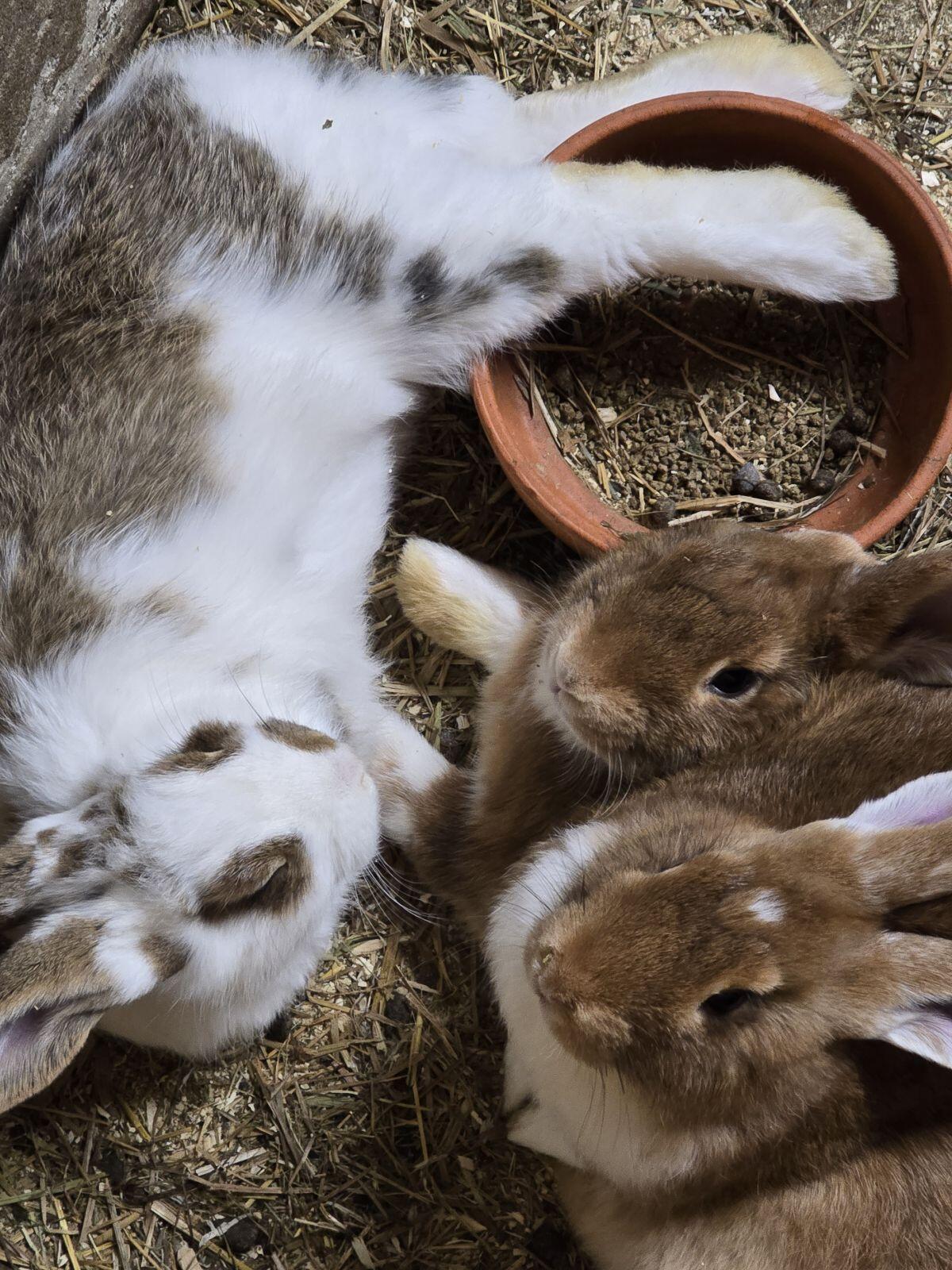 Máme ešte na predaj mäsožravé zajace, krížence v rôznych veľkostiach. Najmenšie majú v súčasnosti 10 týždňov (strakaté a čierne), staršie majú v súčasnosti 4 mesiace