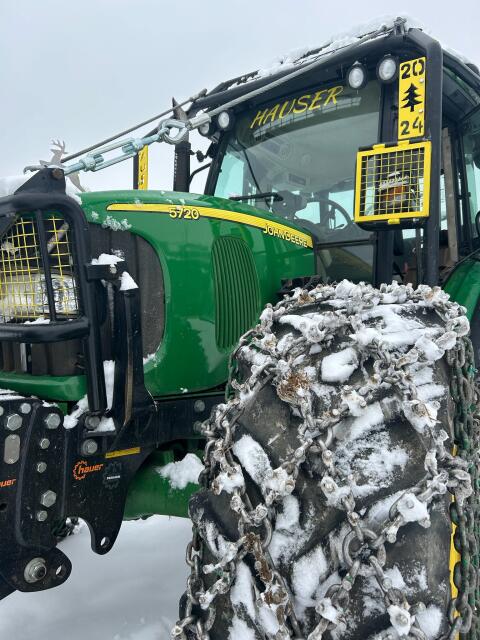 John Deere 5720 abzugeben wegen Neuanschaffung, Bj. 2004, 540/65/34 Trelleborg 80%, 440/65/24 Trelleborg 80%, 2 dw im Heck, Mittelachssteuergerät, 2 dw in der Front,