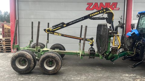 Farma ForstanhängerStandort: 9631 Jenig 7- Forstanhänger- Zentralrahmen- 3 Rungenpaare- hydr. Knickdeichsel- Kran 5m- Endlosrotator- Zange- Eig