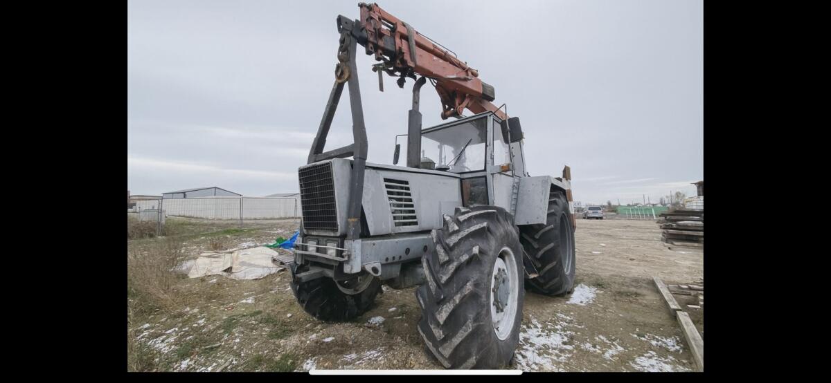 Zum Verkauf steht ein Steyr 8160 Traktor, Bj. 1977, mit etwa 6.000 Bstd. Der Traktor ist mit einem Palfinger PK 11000B Ladekran ausgerüstet. Der Kran funktioniert gr