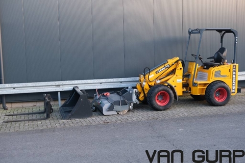 Knikmops shovel incl. veegmachine, bak en lepels.rijklaar zonder hulpstukken: 2150kghefkracht: 1110 kgmet telescopische mast, hierdoor een overlaadhoogte van 3140