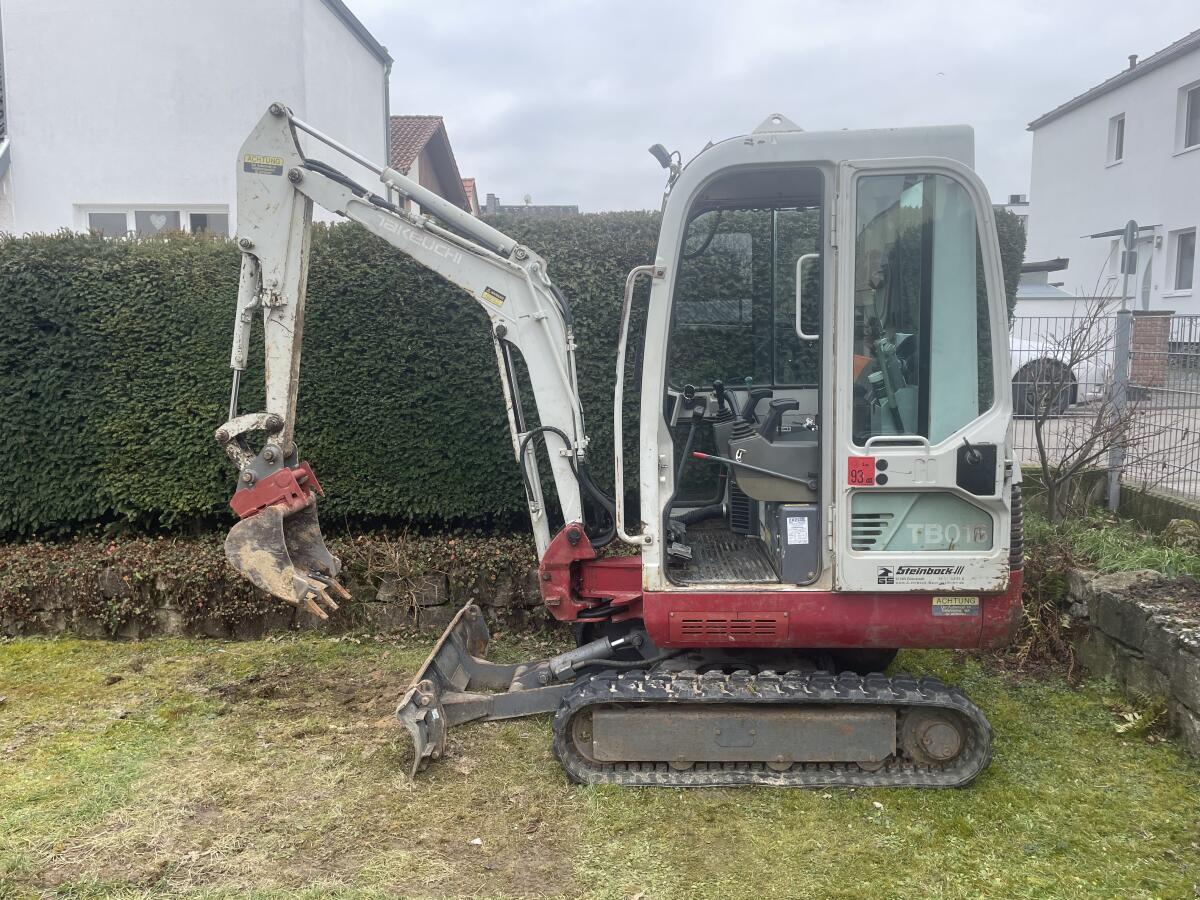 Zum Verkauf steht ein gut gebrauchter, technisch sehr gut erhaltener Mini-Bagger Takeuchi TB 016. Instandsetzungen, Erneuerungen (vor ca. 6 Monaten), Buchsen und Bol