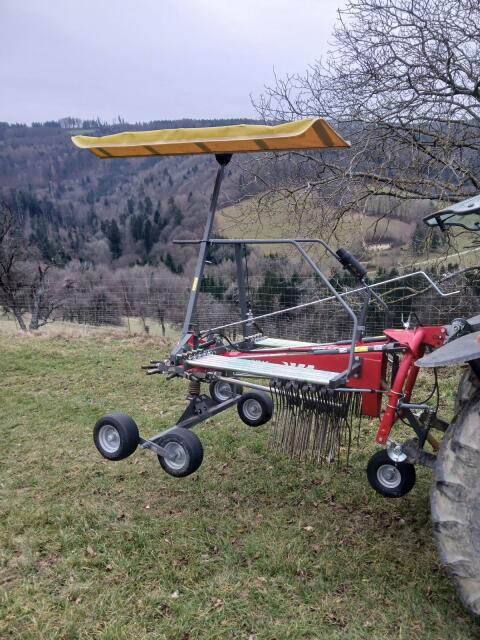 Krone Swadro 46T Einkreiselschwader gezogen, ( Zugpendelanhängung) mit Tastrad vorne, Tandemachse, Schwadtuch, GelenkwelleArbeitsbreite: 4600mmSchwadbreite: ca 8