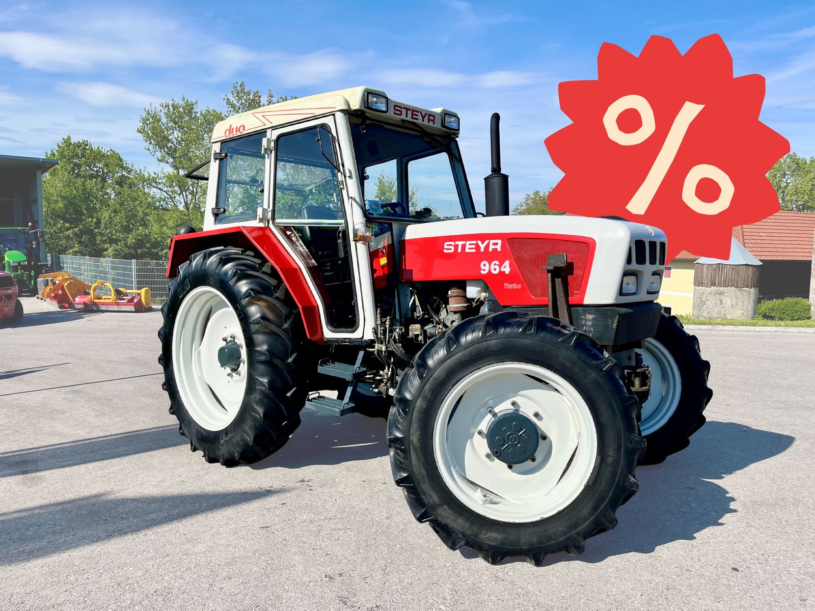 Solider, robuster und gebrauchter Steyr Allrad - Traktor mit Turbolader und Kabine – ideal für vielfältige landwirtschaftliche Arbeiten. Der Schlepper befindet sich