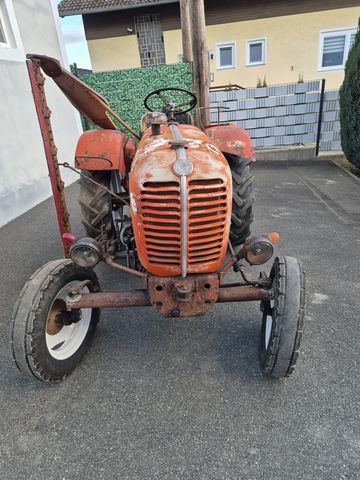 Originalzustand wie auf den Fotos, fahrbereit, gute Restaurationsbasis für einen Oldtimer, da die Blechteile sehr schön sind, hydraulisches Heckhubwerk, Mähbalken, e